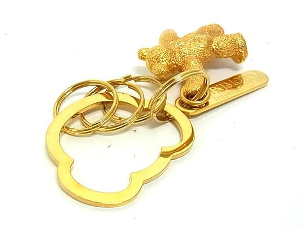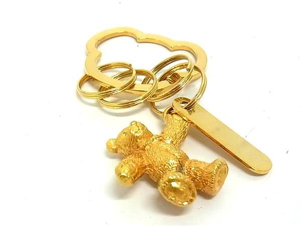 ■美品■ MIKIMOTO ミキモト テディベア くま クマ キーリング キーホルダー チャーム レディース ゴールド系 DH9559