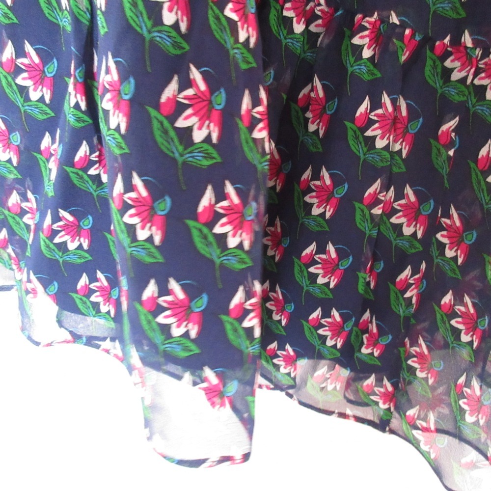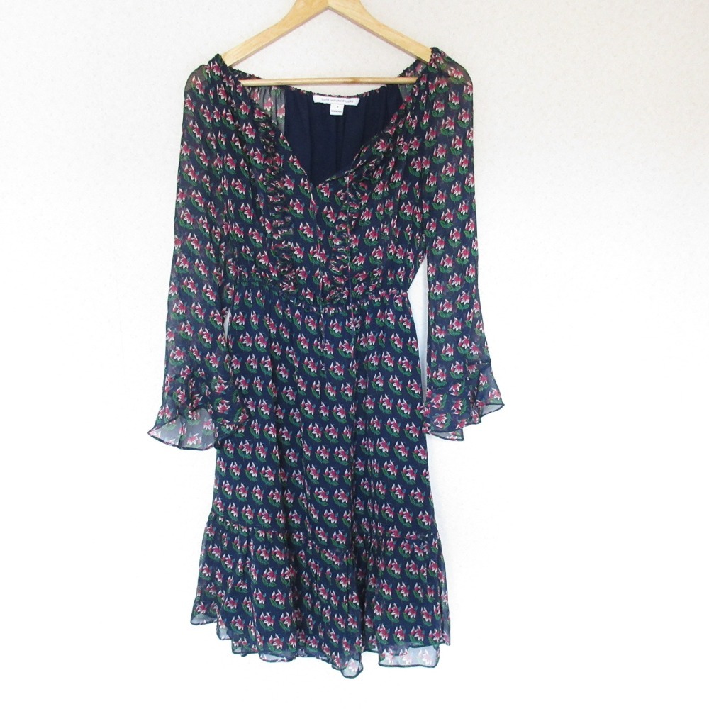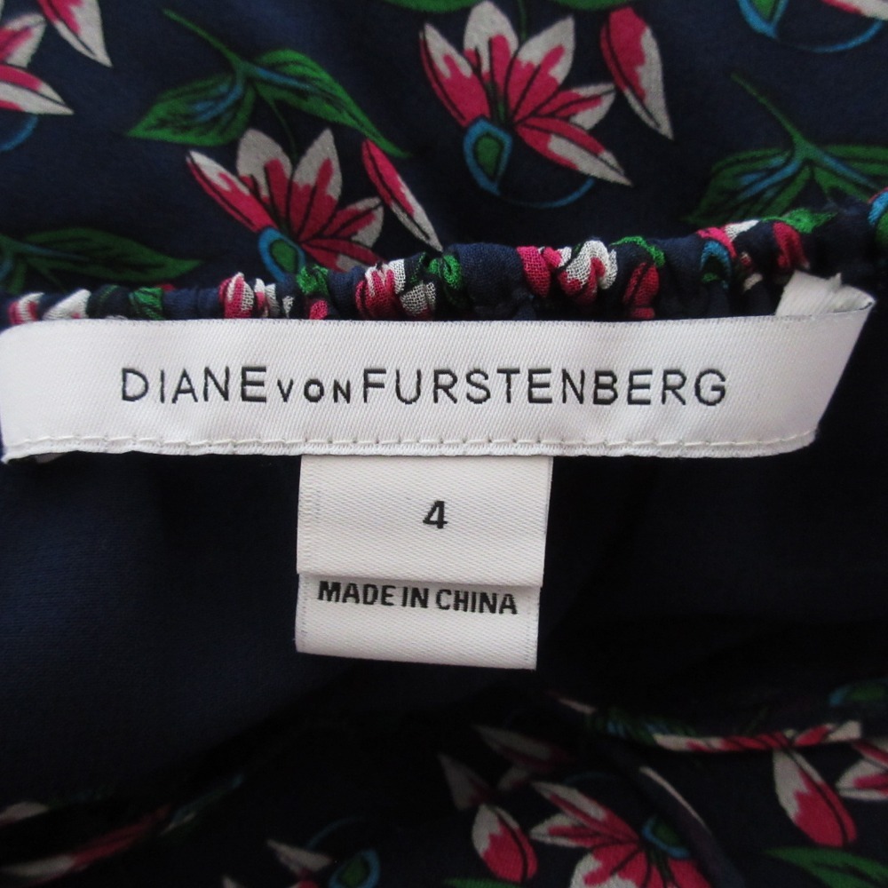 美品 DIANE VON FURSTENBERG ダイアンフォンファステンバーグ フラワープリント シアー ワンピース 4 ネイビー