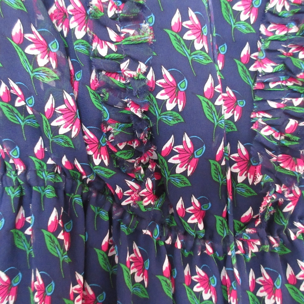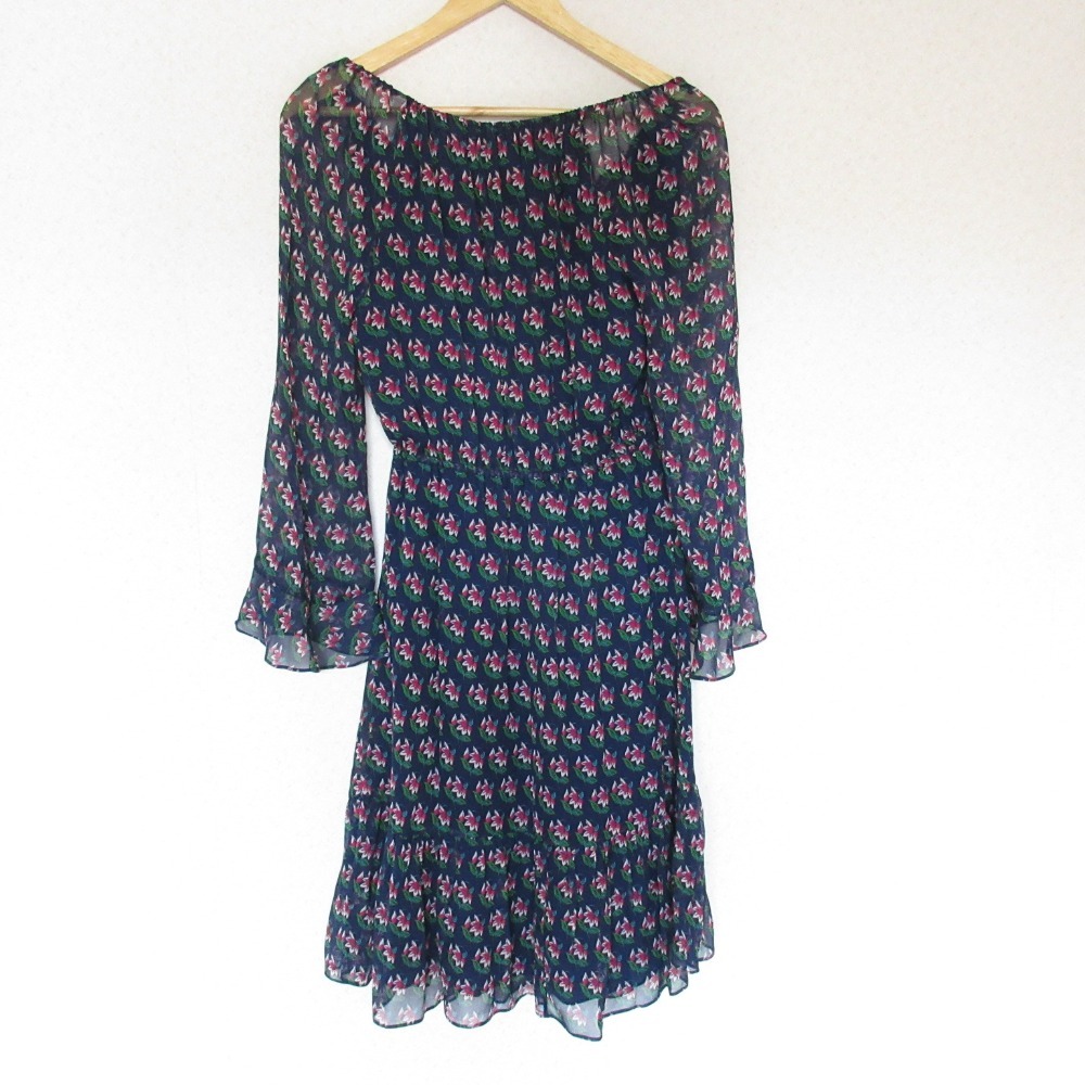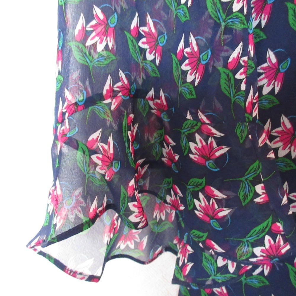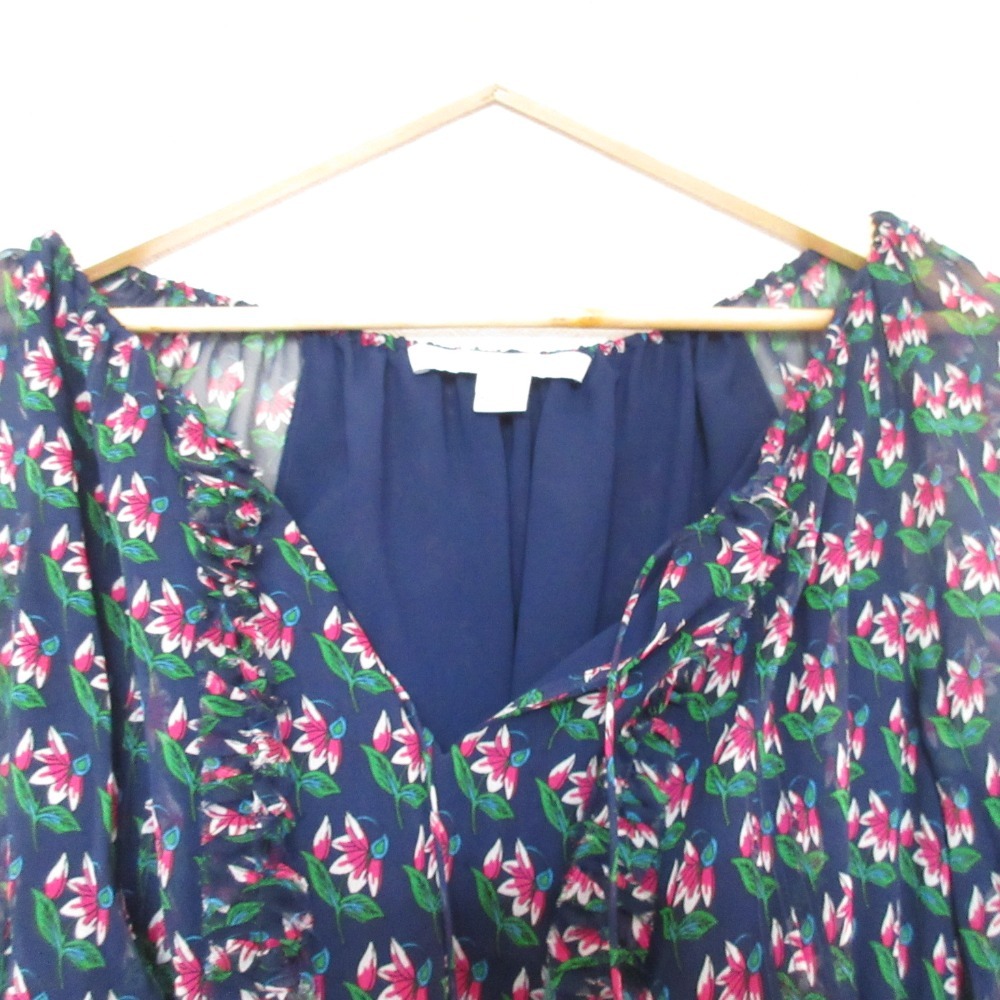 美品 DIANE VON FURSTENBERG ダイアンフォンファステンバーグ フラワープリント シアー ワンピース 4 ネイビー