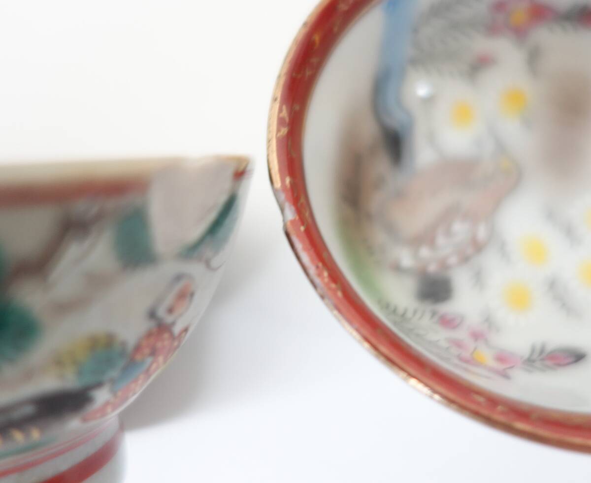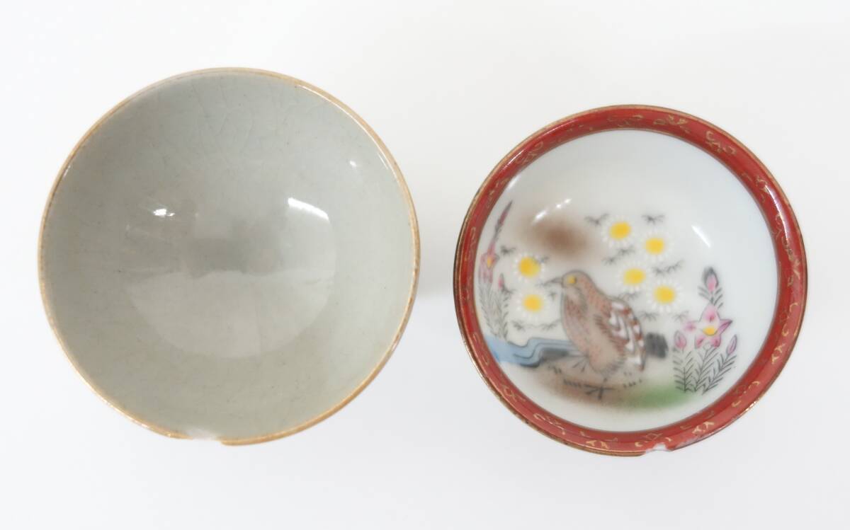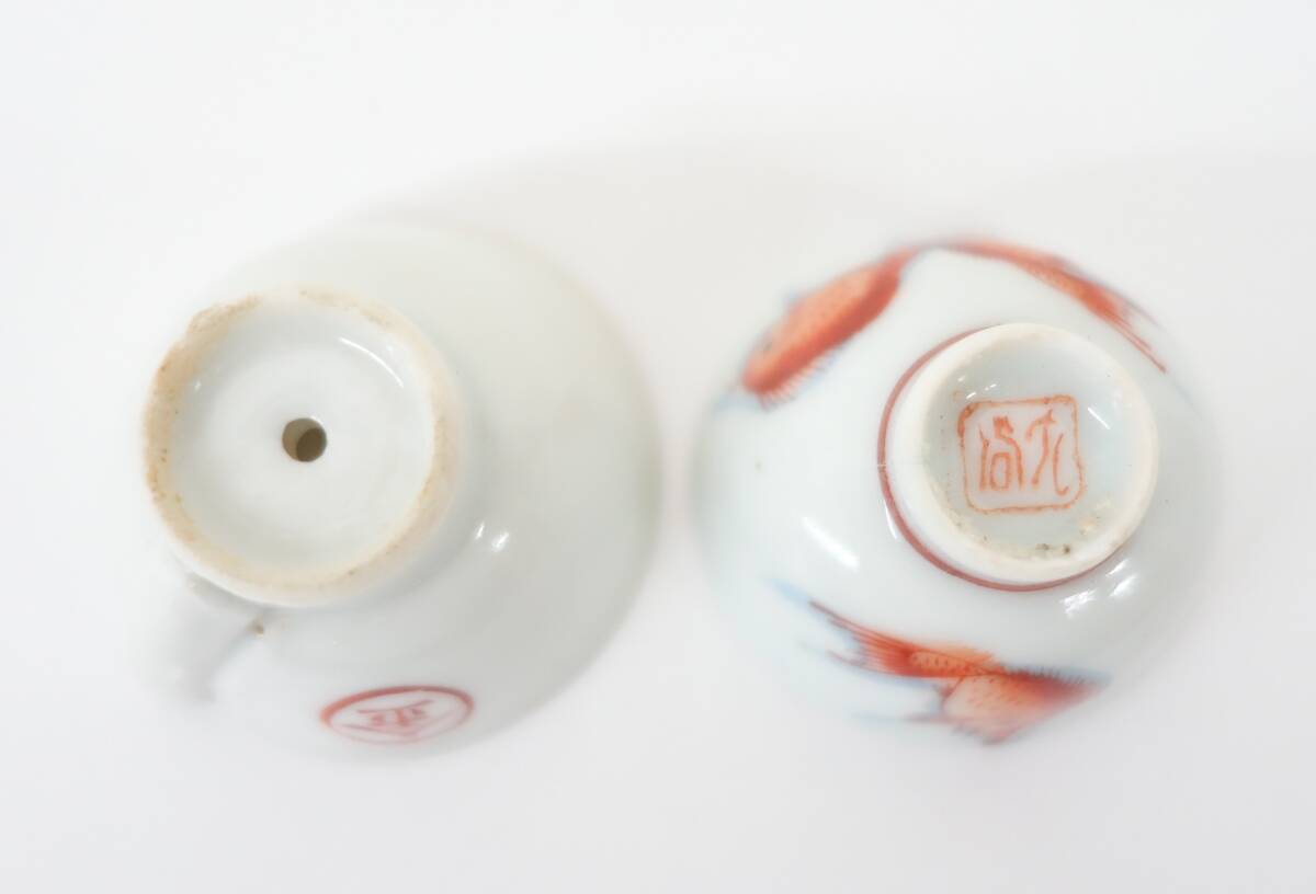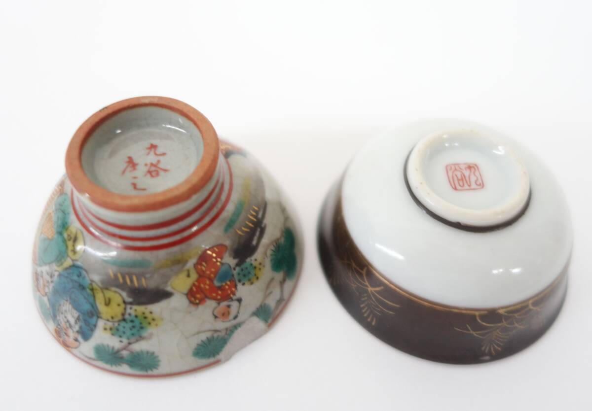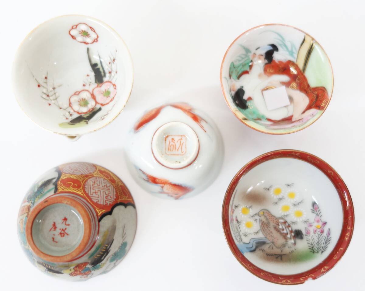 *伝統工芸 工芸美術 時代 *九谷焼他 KUTANI YAKI *お猪口 盃 酒杯 ぐい呑み 酒器 五点 *赤絵 色絵 彩色 枕絵 桜 金魚 などなど *古物 古美術 骨董 |