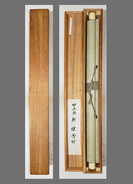 肉筆、真作保証。 作品に、時代感、シミ、汚れ、全体に多数の強い折れ、 巻きじわ、多数のスレ、傷んでる箇所があります。 表装に、時代感、シミ、汚れ、折れ、巻きじわがあります。 表装裏側に、経年によるシミ、汚れ、スレ、傷んでる箇所があります。 箱は合わせ箱です。軸先にヒビがあります。 箱のサンに経年による傷み、破損箇所があります。 雪村周継 略歴:美術評価額4000万(画)別号如主、 常陸人禅僧、雪舟牧渓を慕「径山真景図」天正頃。 下記の真作保証について・注意事項をよくご覧の上、 お気に召された方に、お譲り致しますので、ご入札を宜しくお願い致します。 |