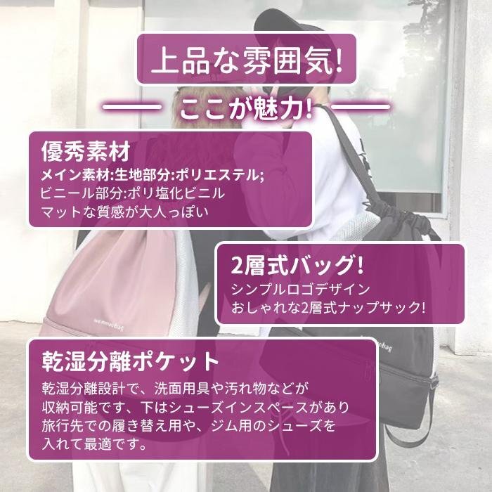 ■プールバッグの内側は乾湿分離で、濡れた靴や水着等を分けて収納する事が出来ます♪