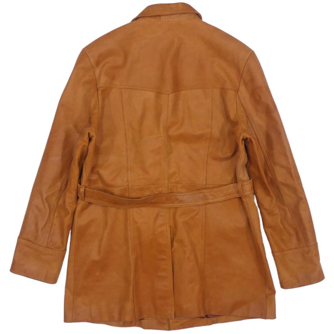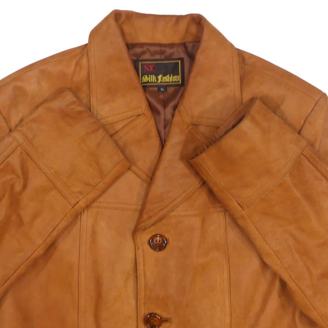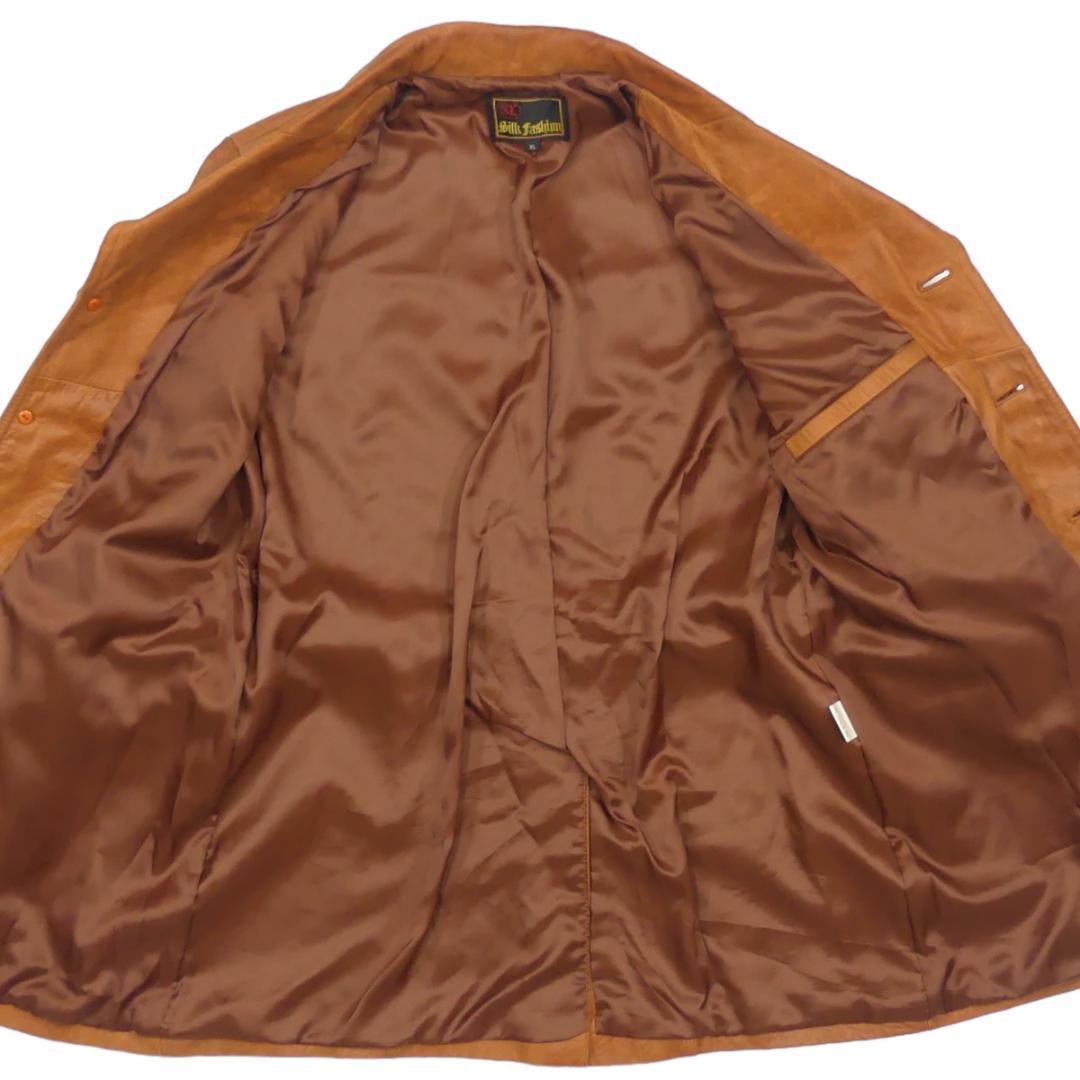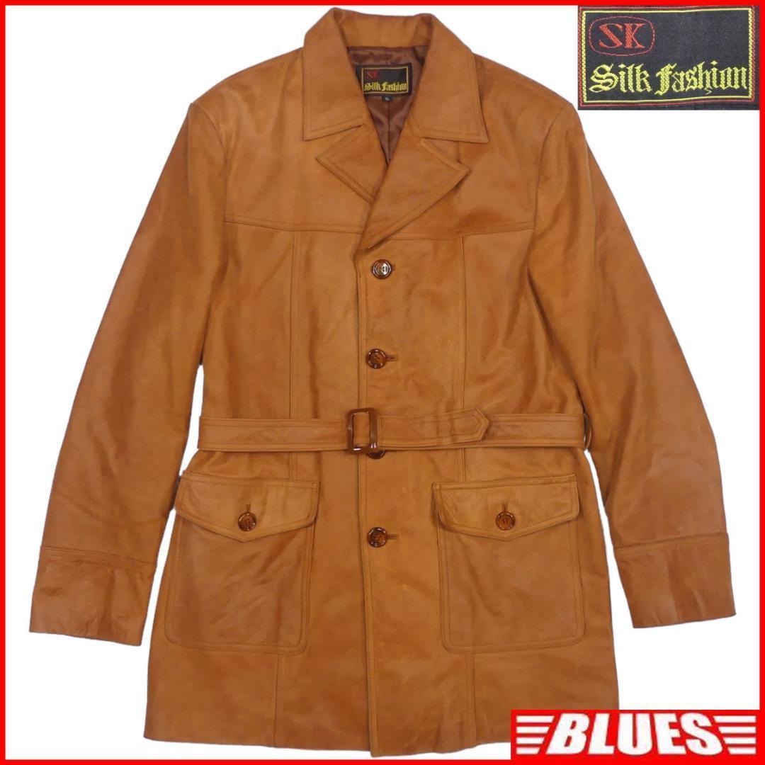 即決★Silk Fashion★メンズXL レザートレンチコート シルクファッション 茶 本革 ジャケット 本皮 革ジャン