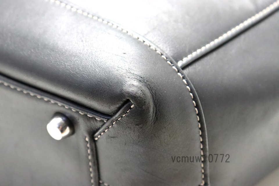 ※外側注意点:ハンドル付け根付近レザースレ補色跡あり、ハンドル留め具社外縫い