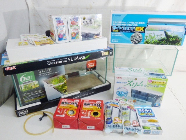 こちらは160サイズでの発送を予定しております。 送料など詳細は「梱包・発送について」欄に記載しておりますので、そちらをご確認ください。 水槽 大(約):45×20×H22.5cm、小(約):30×20×H14cm など、詳細は写真でご確認ください。 ※すべてのお品のサイズを測ってはいませんので、上記サイズを参考にご考慮ください。 写真のものがすべてです(水槽と飼育用品以外のものはイメージのため、付属しません) こちらは未使用品です。 小さい水槽は、角や縁が欠けてしまっています。 ライトは撮影のため開封しましたが、動作未確認です。 家庭での保管品となりますので、その他傷や汚れなど、写真をご確認の上での入札をお願いいたします。 詳細複数写真 ← Googleフォト リンク出来る場合写真はGoogleフォト 動画はYouTubeにリンクしています ※梱包について※ 緩衝材を使用した梱包をご希望の場合は500円を頂戴いたします。 落札時にご希望の旨を必ずご連絡下さい。ご連絡がない場合は簡易梱包で発送致します。 簡易梱包の場合、追加費用はかかりません。 ※簡易梱包は緩衝材等を使用しませんのでご了承下さい。 素人なりに配慮した梱包を心掛けております。 しかしながら配送中にどうしても欠け、ひび、割れ等発生する場合がございますが免責とさせて頂き、返金等は致しかねますのでご了承・ご了解の上ご入札下さい。 詳しくは梱包・発送についてをご確認下さい。 商品ランク(ランクの記載のない商品もございます) A:新品・未使用品。 B:未使用に近い状態です。 C:中古品ですが目立った傷や汚れありません。 D:中古品の為、やや傷や汚があります。 E:中古品の為、傷や汚れ等の使用感が多数あります。 F:全体的に状態が悪い。 ☆個人での主観評価となりますので参考程度にしてください。 | ||||||||||||||||||||||||||||||||||||||||||||||||||||||||