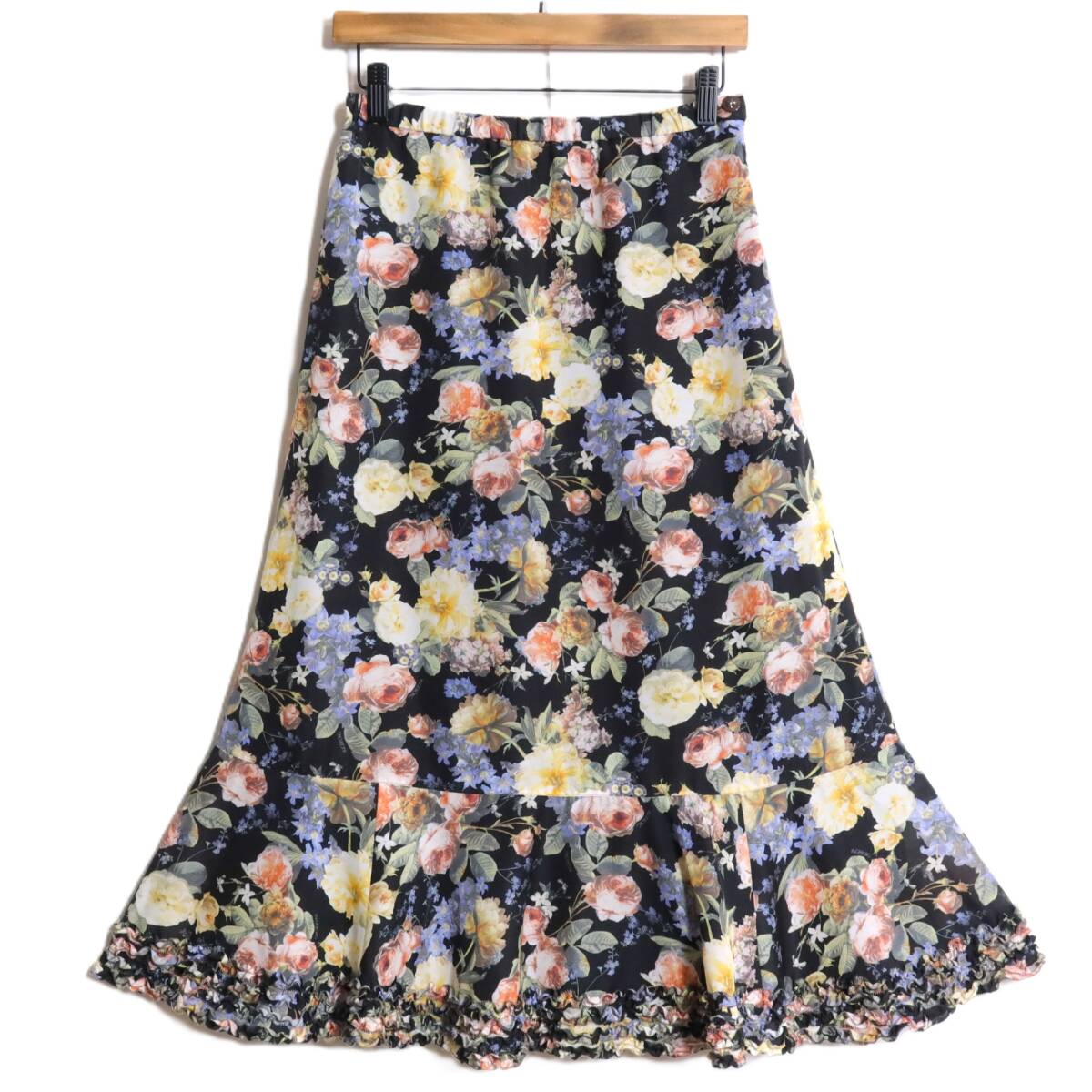 | 商品説明 | 【実寸約】ウエスト68~丈79(cm) 【サイズ表記】 9 【素材】 ポリエステル100% 【状態】普通の使用感のあるお品物 全体に毛羽立ち感あり 【デザイン】黒系 フレアな裾がフェミニンなロングフレアスカートです。 薄手/花柄・裾に段々フリル付き 裏地あり |