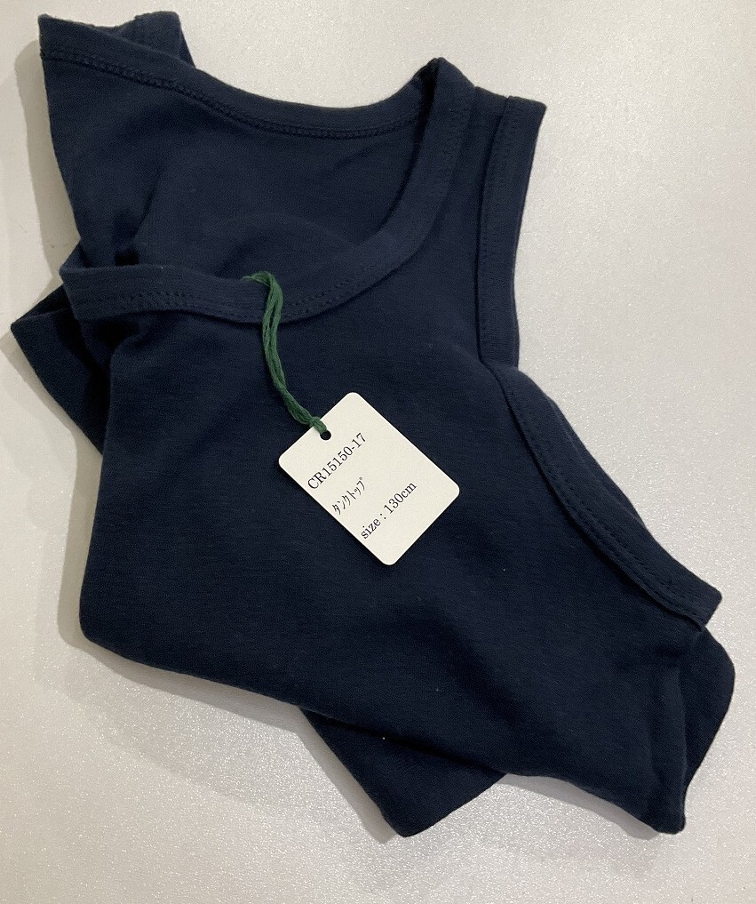 <再値下げ>CR15150-17 IBK⑥【特価】新品 小さい タンクトップ 3枚組 130㎝ ネイビー 綿100% シンプル 刺しゅう キッズ