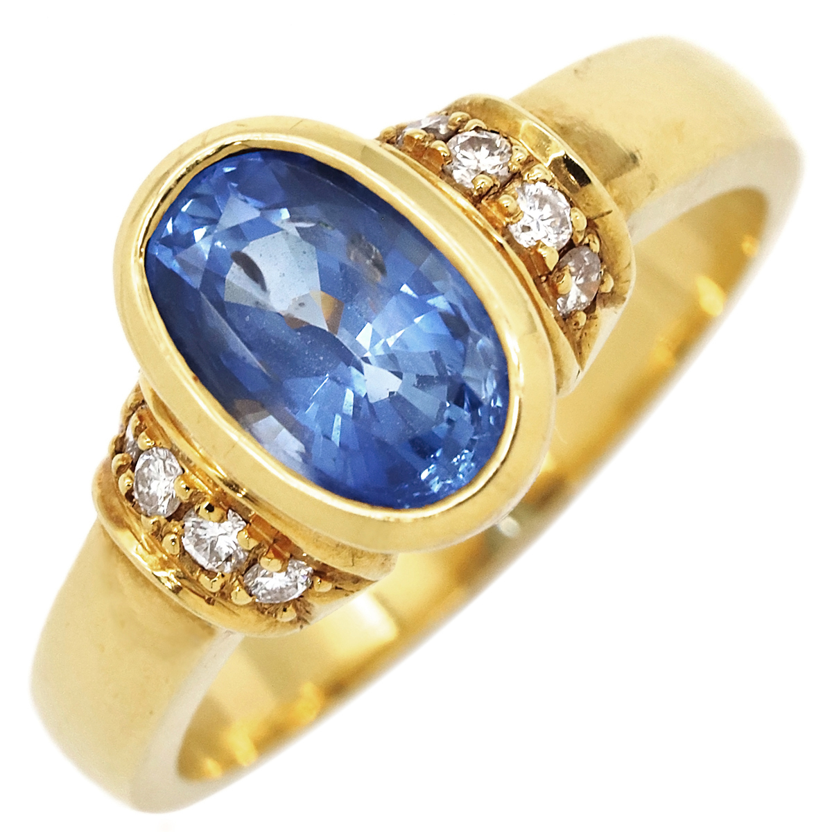 ノンブランド NON BRAND リング 指輪 K18YG サファイア ダイヤモンド イエローゴールド×ブルーAu750 18K 青 オーバル - 14号 メンズ レディース ユニセックス定番 人気 美品 中古 | |
