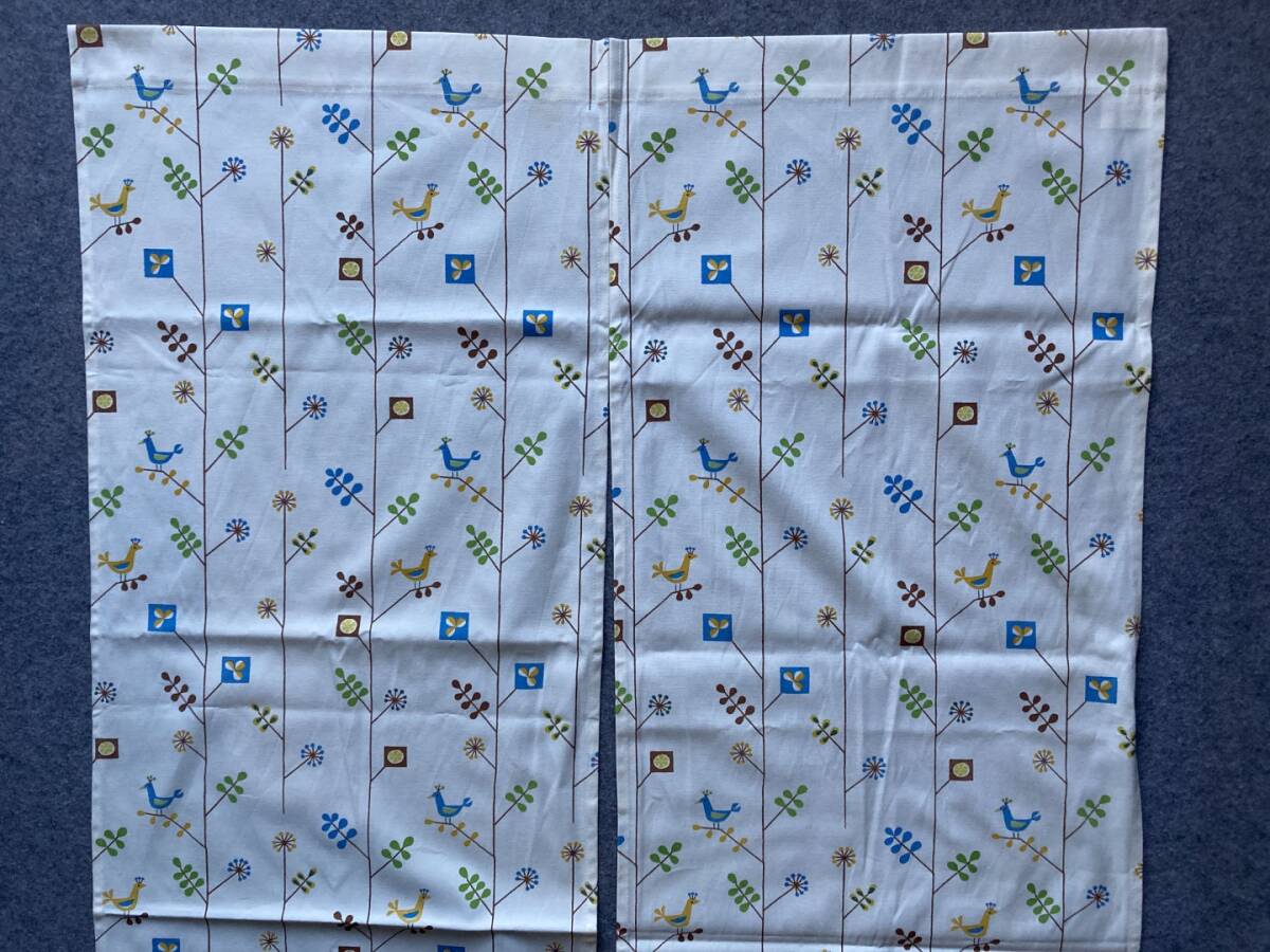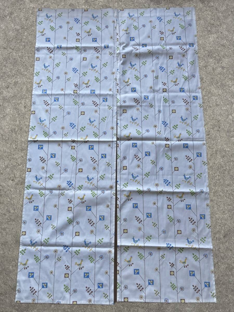 送料込 即決 北欧柄 川島織物 セルコン vita 暖簾 のれん ブルー 88cm×150 植物 鳥 バード とり