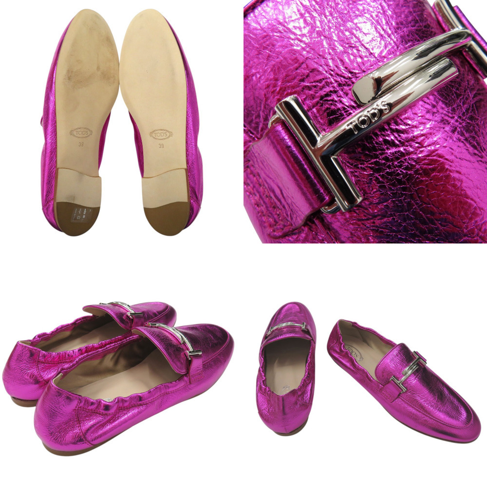 トッズ T TIMELESS Tタイムレス ダブルT ローファー XXW79A0X010YF3 レザーシューズ メタリックレザー ピンク 1603 TOD’S