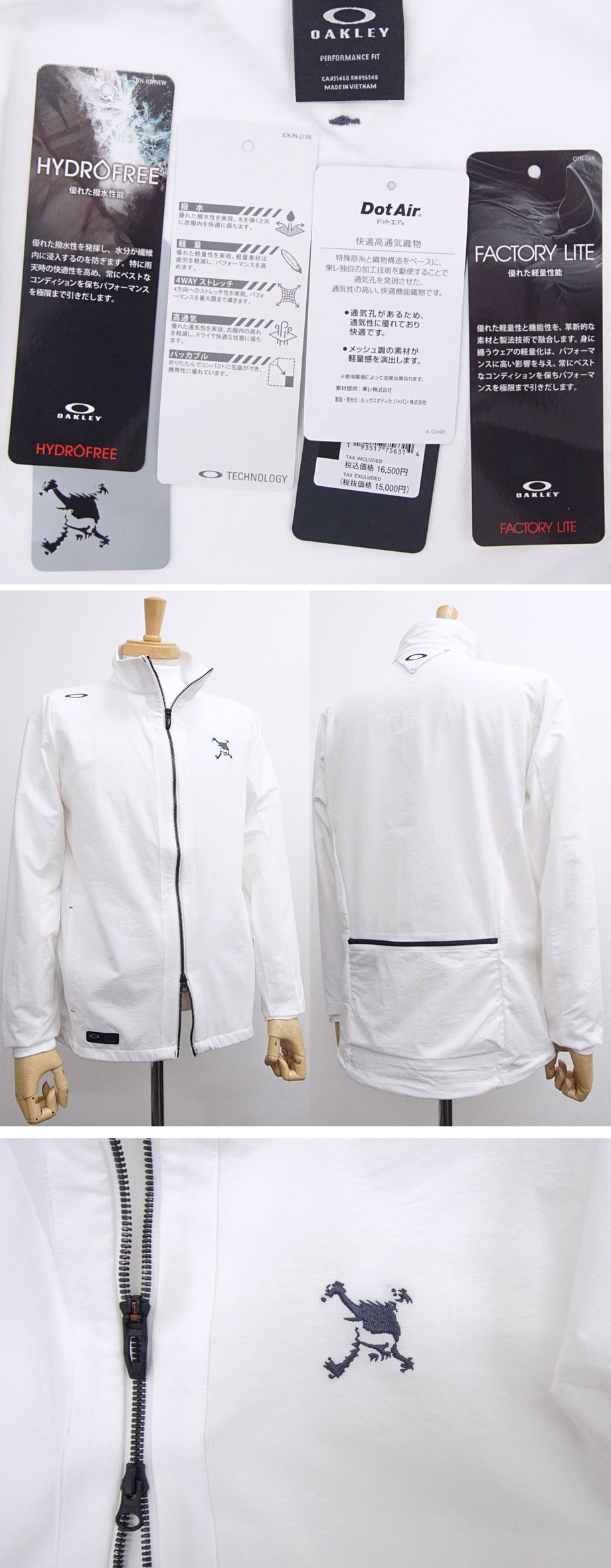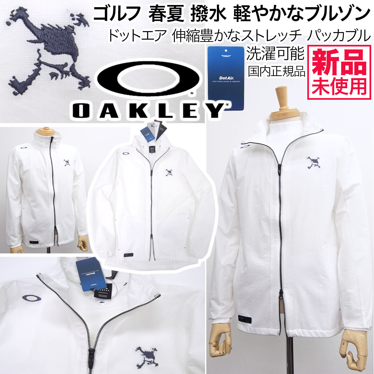 [新品]定価16500円 オークリー ゴルフ【XL】スカル 春夏 清涼ドットエア 高機能 ジャケット ブルゾン 撥水 高通気 洗濯可能 白 OAKLEY GOLF