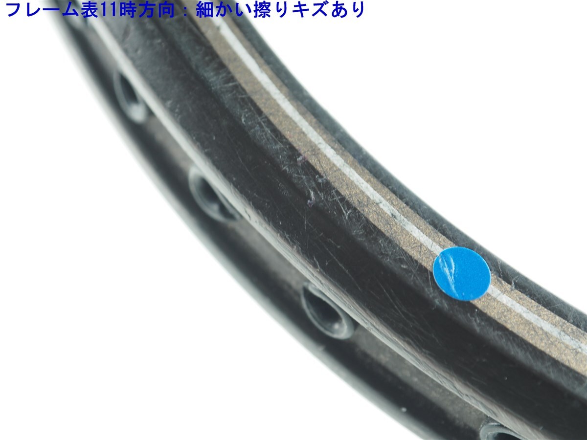 フレーム両面とも全体に渡って大きなキズではありませんが細かい擦りキズが多くあります。トップもサイドもキズが多くラケット自体に使用感があります。