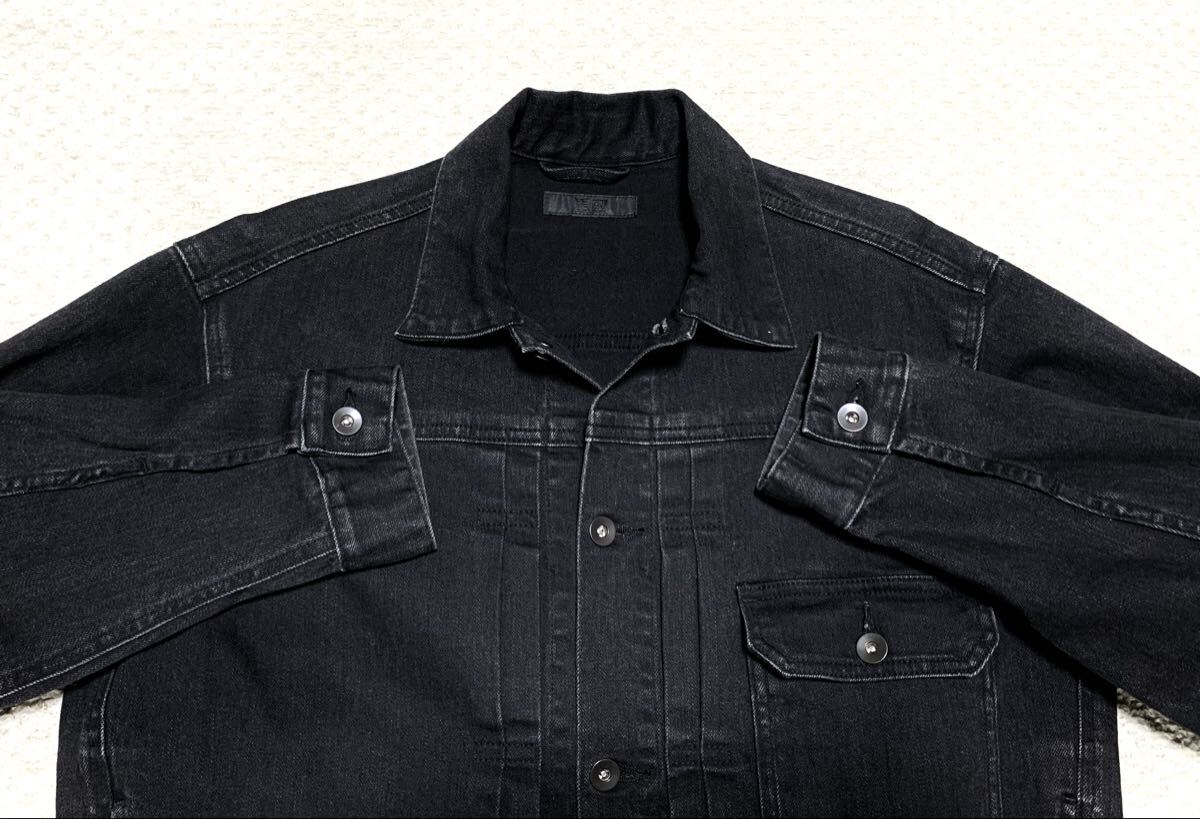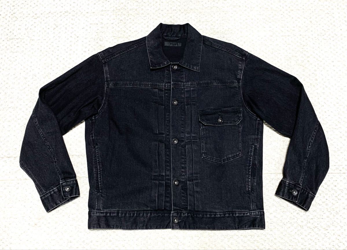 新品同様:UNIQLO.ファースト タイプ デニム ジャケット M(黒Used加工/オーバーサイズ/Gジャン/ストレッチ/肩50幅58/levis 1st type/藤原裕)