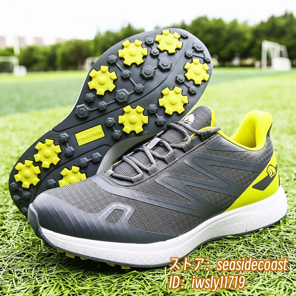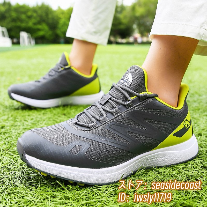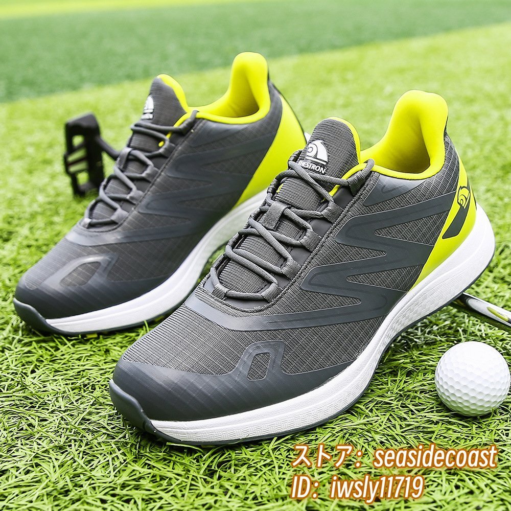 高級品■ゴルフシューズ 新品 スポーツシューズ 強いグリップ 運動靴 切替 メンズ 幅広 紳士 スニーカー 防滑 耐磨 通気性 グレー 27.5cm