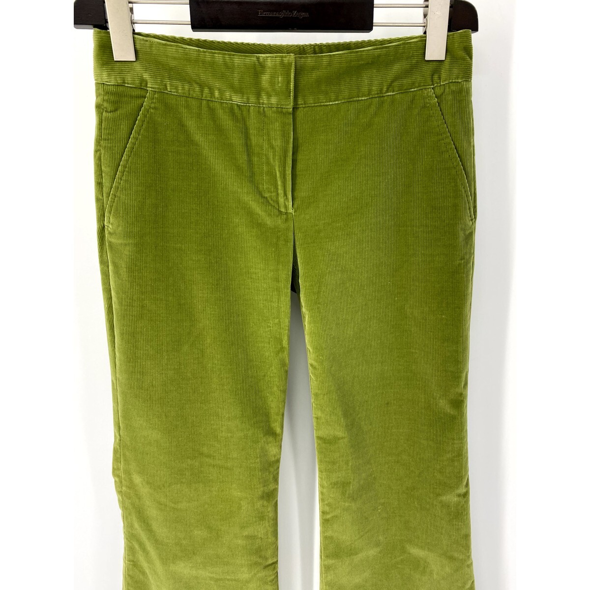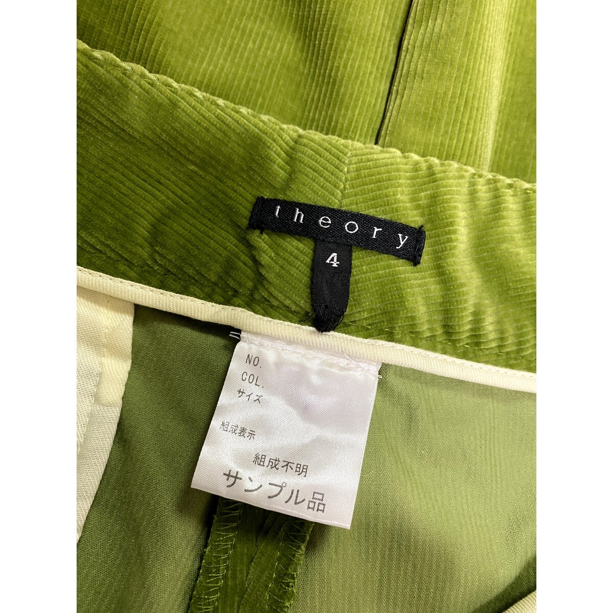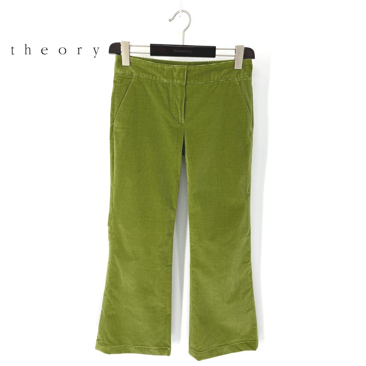 A6151/美品 春夏 THEORY セオリー ベロア ベルベット ベルボトム ブーツカット フレアパンツ スラックス トラウザーズ 4 緑/レディース