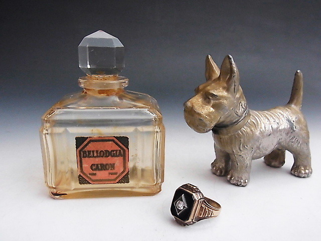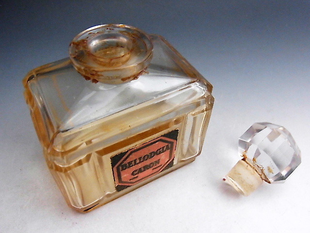 1927年に発売されたベロージア・キャロンのアンティーク バカラ製 クリスタルの1オンス香水瓶です。 古い瓶でまだ少々凝固した香水が残っており当時の香りがお楽しみ頂けます。 カーネーションのフローラル香とあとから来る軽いスパイスを感じさせる余韻が特徴の香水です。 茶色く凝固した部分はアルコールなどで落ちますがオリジナルの香を保つためあえてそのままにしています。 6枚目の画像に大きさ比較参考のため1/2オンス瓶を並べてみました。 状態はほぼ完全美品です。 年代は1930年代の作品です。 大きさは全高が8㎝、横幅5.5㎝、縦幅4㎝ あります。 送料は2700円頂きます。 お支払いはYahoo!かんたん決済、または銀行振込みでお願いします。 日本以外への海外発送も承ります。 ご入金確認後支払2日以内にアメリカより航空便でお送りいたします。 発送後通常4~10日でお届けいたします。 複数品落札の場合は送料をまとめて計算させて頂きますのでお得になります。 私共は経済産業省の定める特定商取引法を順守しております。 当方の所在地住所等は出品者の自己紹介情報欄をご覧ください。 ご質問等ございましたらお気軽にお問い合わせください。   他にもオールドノリタケを中心に沢山出品しておりますのでここをクリックしてご覧ください。