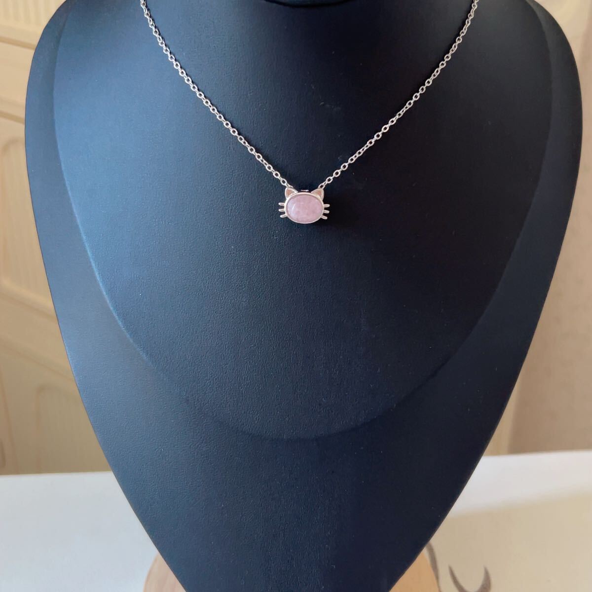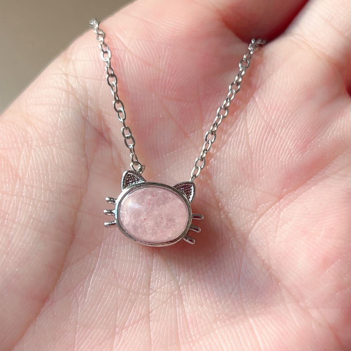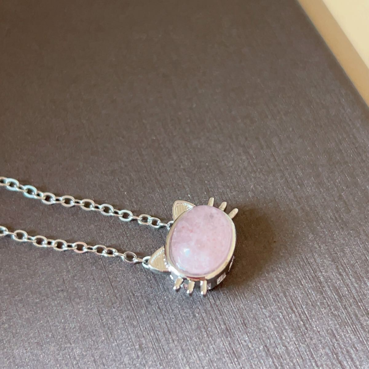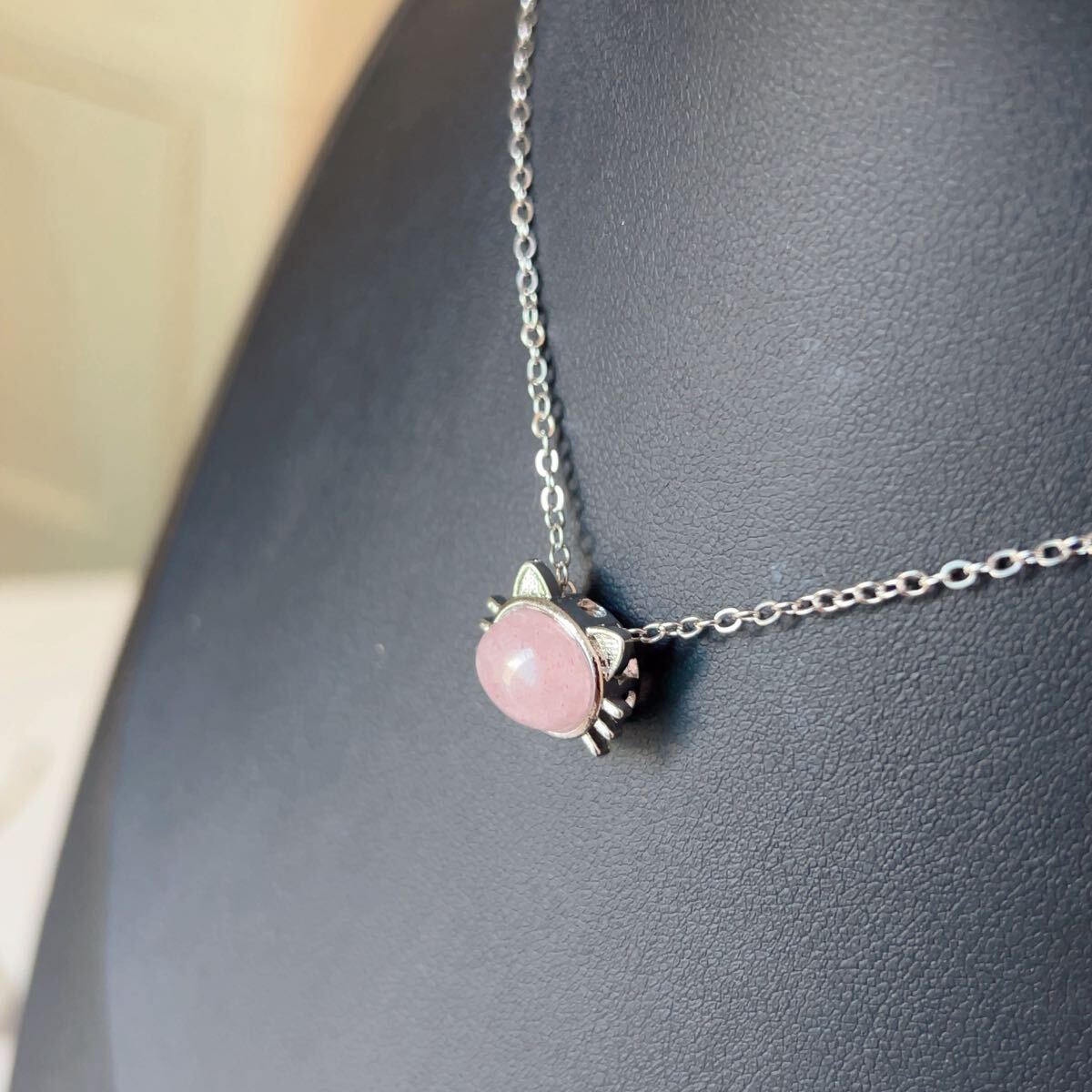 ◇ストロベリークォーツ(苺水晶) ◇ねこ形◇ネックレス◇ペンダント◇パワーストーン◇天然石◇巾着袋付き◇プレゼントにも039P8269