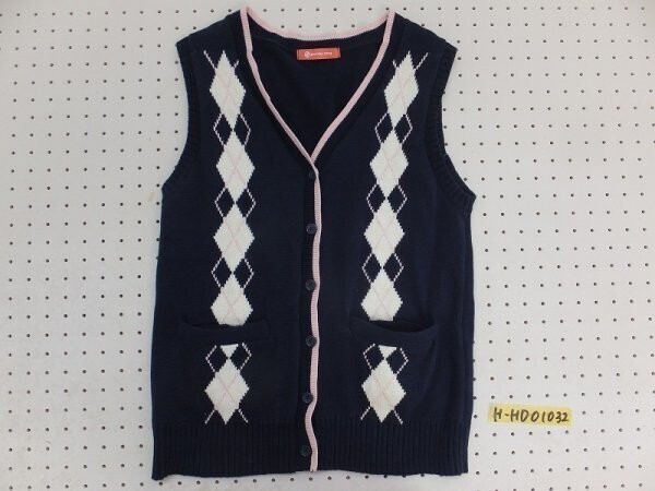 good day young キッズ 綿100% アーガイル ニットベスト M 紺白ピンク です。