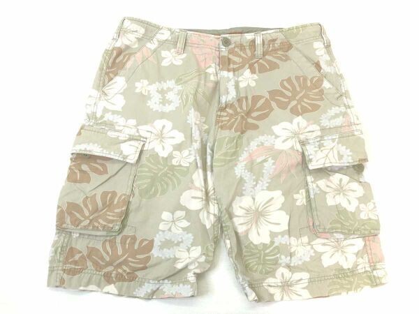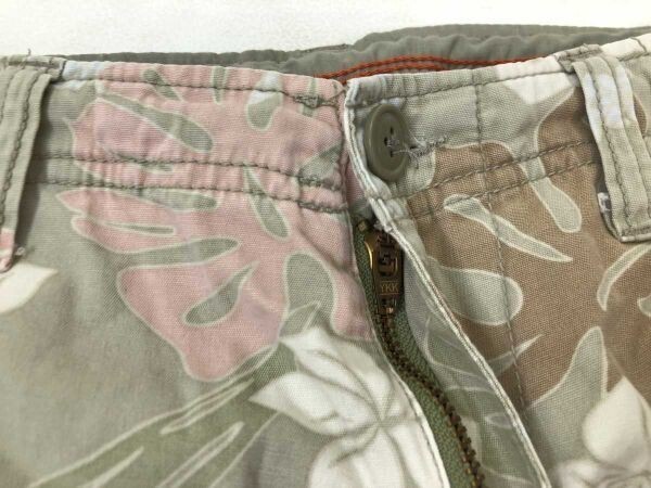 Lucky Store ラッキーストア サーフ ボタニカル ハイビスカス シダ柄 アロハ柄 ショート ハーフ パンツ メンズ 古着 綿100% LL カーキ