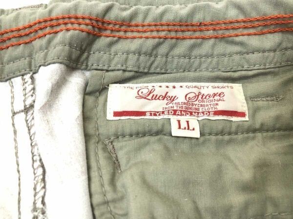 Lucky Store ラッキーストア サーフ ボタニカル ハイビスカス シダ柄 アロハ柄 ショート ハーフ パンツ メンズ 古着 綿100% LL カーキ です。