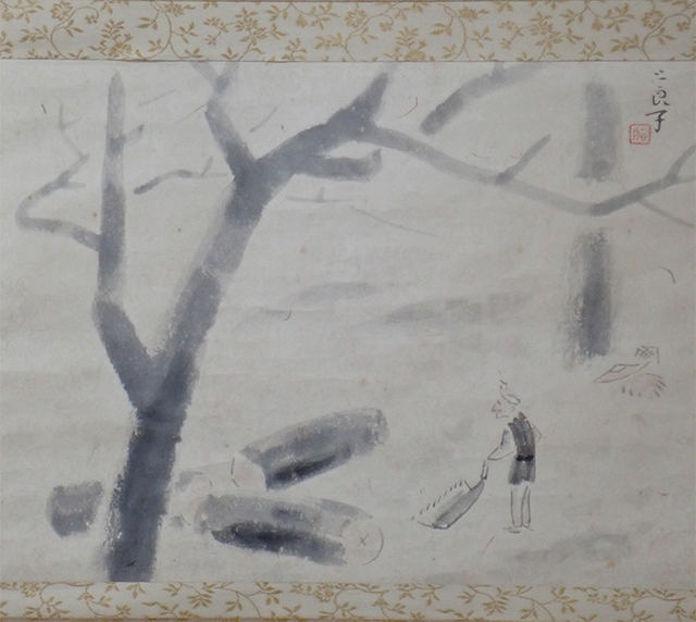 02536 酒井三良 作 仮題「風景」掛軸(合わせ箱)