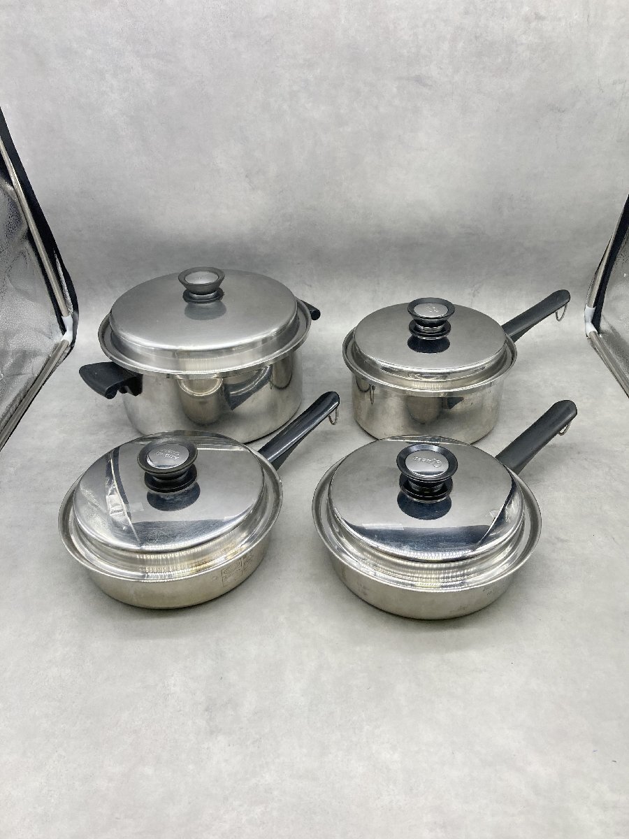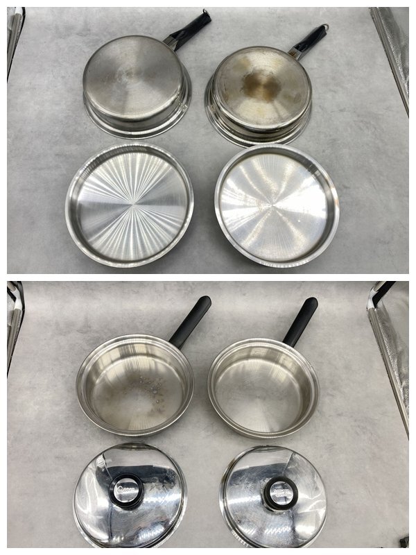 両手鍋・片手鍋 4台まとめ【F984◎】Amway Queen アムウェイクィーン ステンレス製 両手鍋 直径約27cm / 片手鍋 直径約21cm【中古】250826