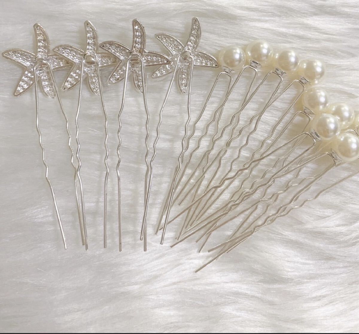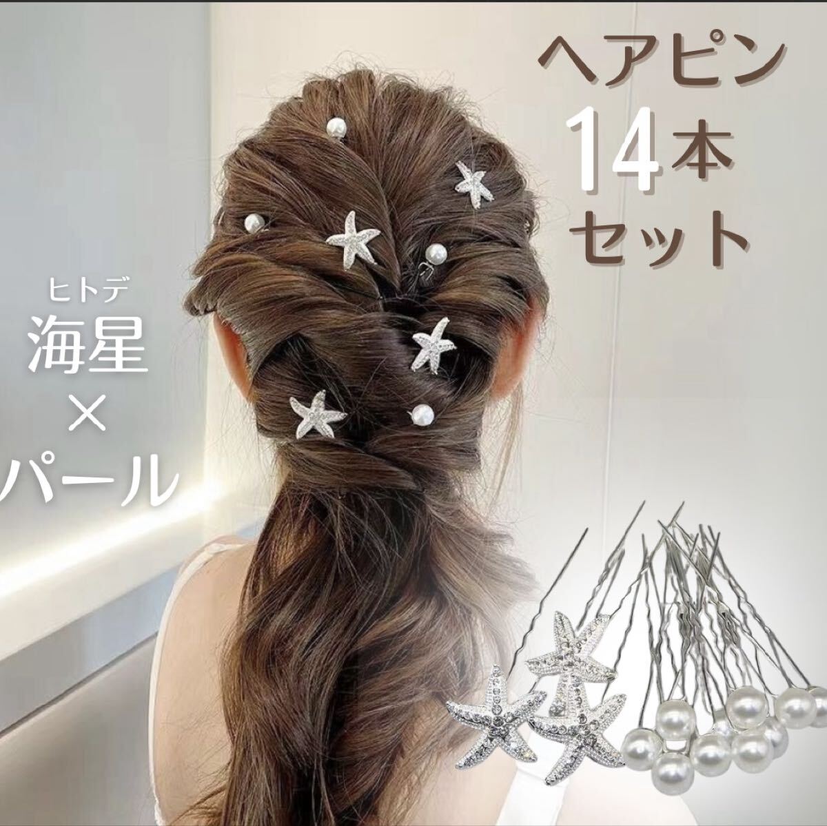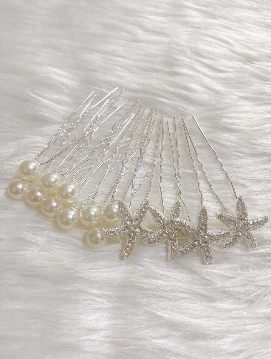 ヒトデのUピン4本とパールのUピン10本がセットになっているので、お好きな組み合わせで様々なヘアアレンジを楽しんでいただけます。