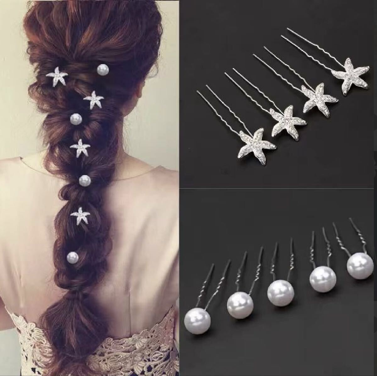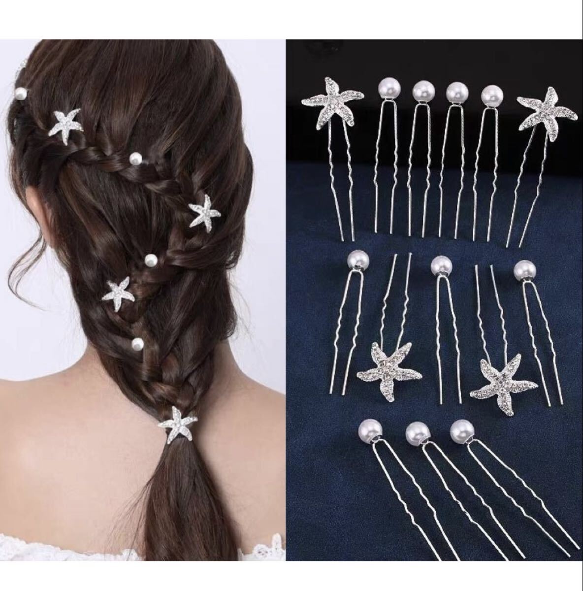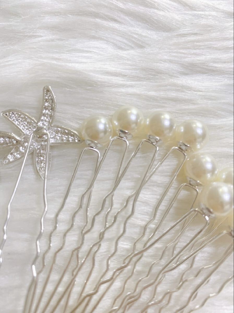 ヒトデのUピン4本とパールのUピン10本がセットになっているので、お好きな組み合わせで様々なヘアアレンジを楽しんでいただけます。