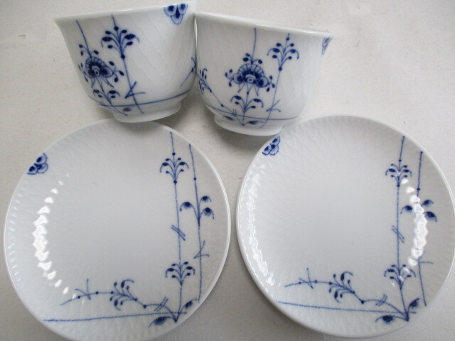 ロイヤルコペンハーゲン ブルーパルメッテ ペア ジャパニーズカップ プレート/ 湯呑 カップ 小皿