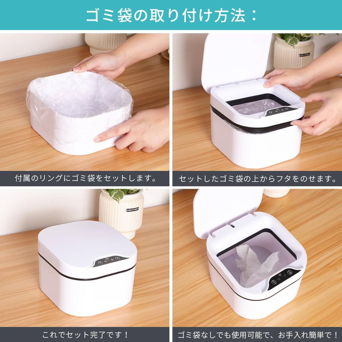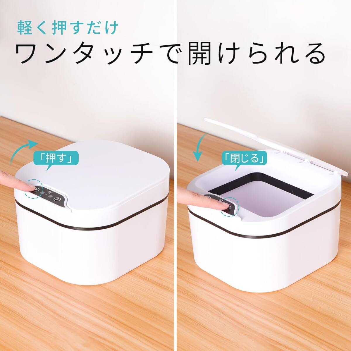 コードレスの電池式なので、デスクの上やリビング、洗面台横など省スペースにも設置しやすく、毎日のちょっとしたゴミ捨てがぐんと快適になります。