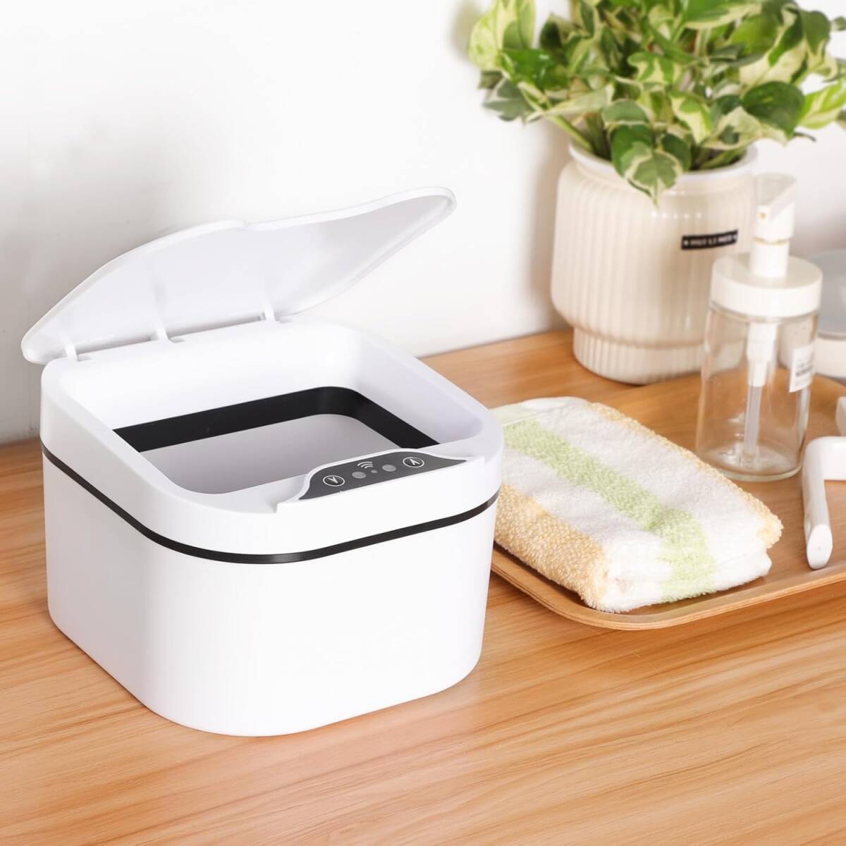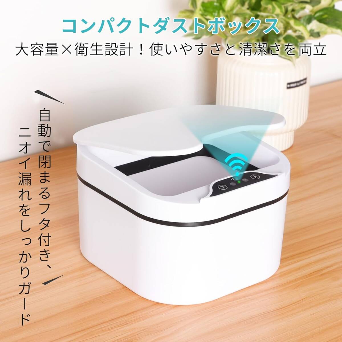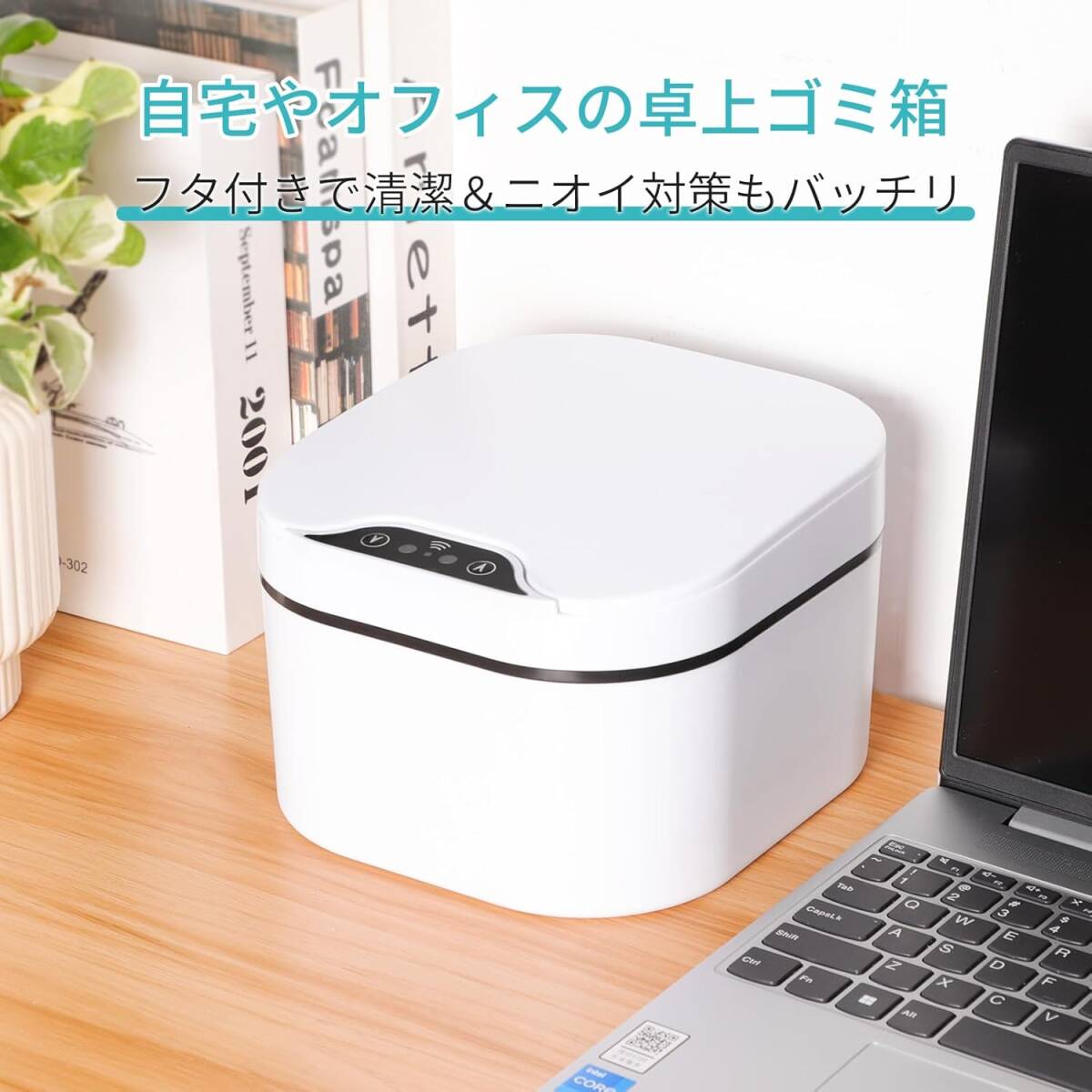 卓上ゴミ箱 1.5L ホワイト 幅18奥行19.5高さ11.5cm ノータッチ ふた付き ミニゴミ箱 センサー付き 自動開閉 電池式