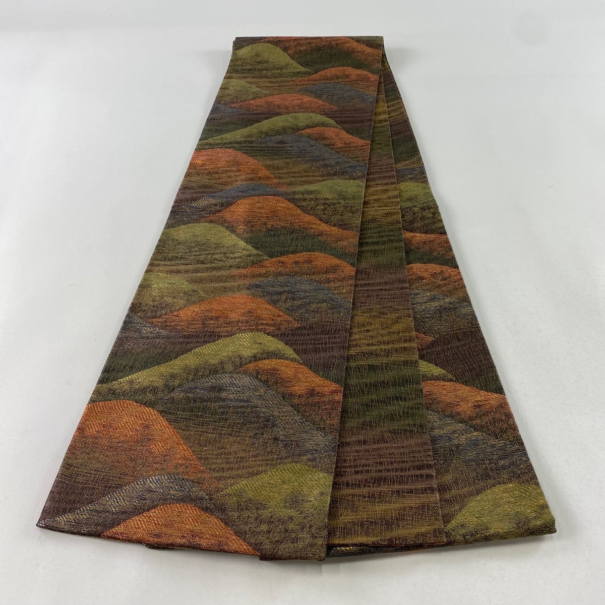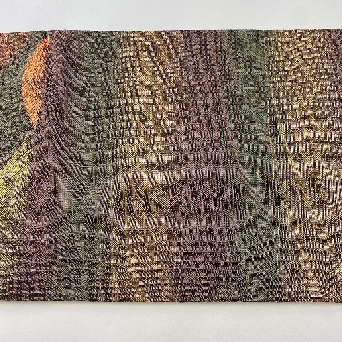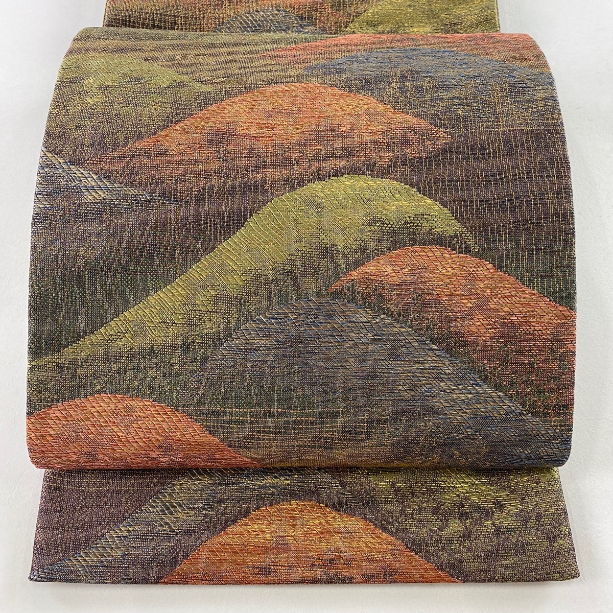 | 袋帯 秀品 山 金糸 箔 茶紫 六通 正絹 【中古】 |