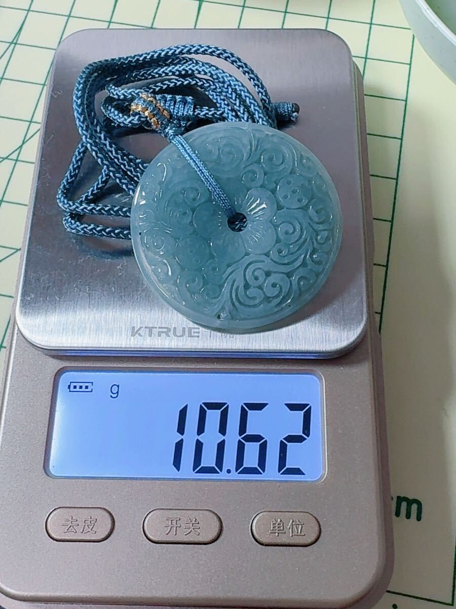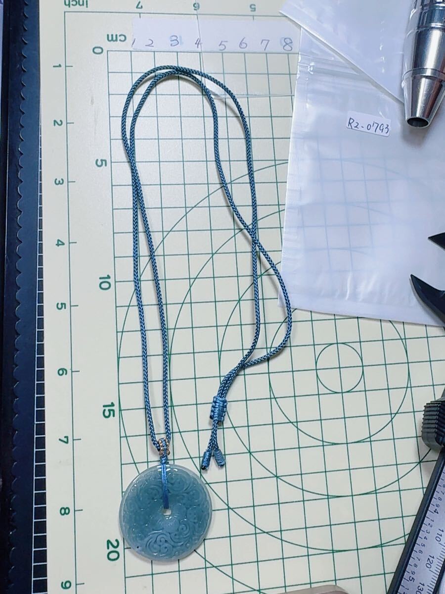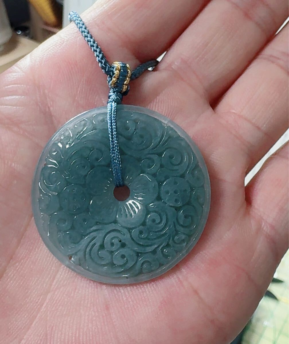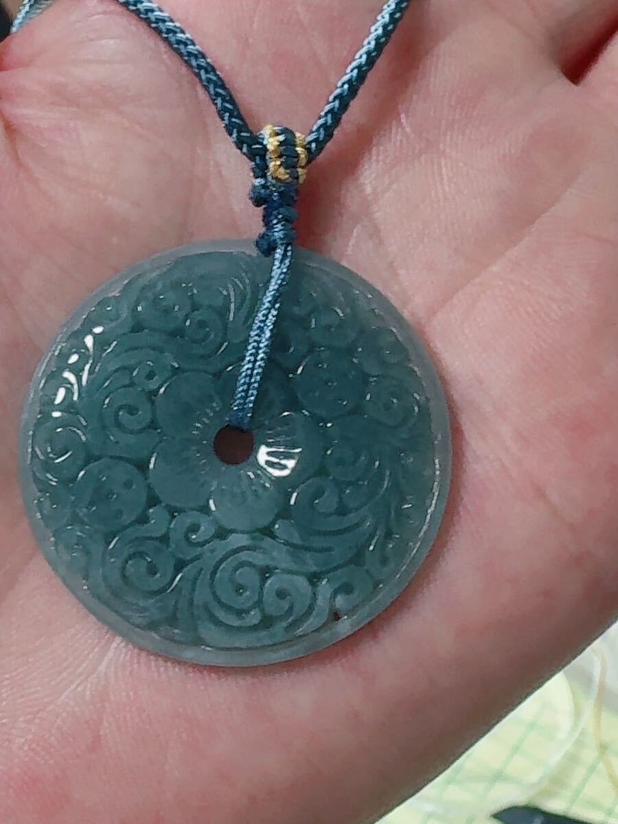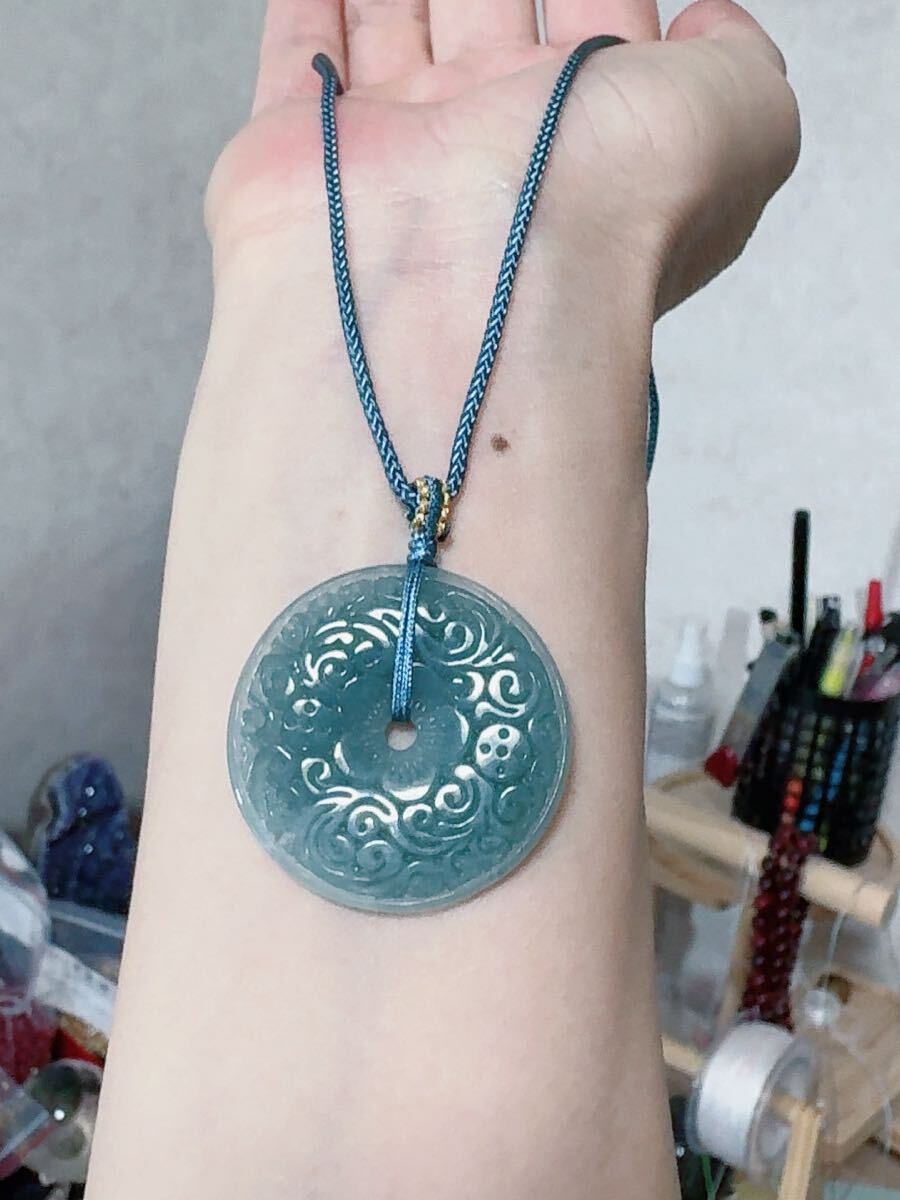 R2-0793天然本翡翠 《本物保証》 藍水翡翠 ペンダント 平安叩 一点物 魔除け 昇進 成功 風水 金運 財運 幸運 幸福 縁起 パワーストーン
