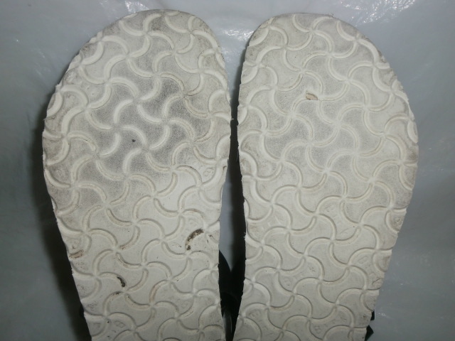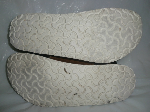 ユーズドとしての着用感は少なめです。 破れ・目立つ擦れ/傷・目立つ汚れ等ありません。 ソールもほとんど減っていませんし、フットベッドの汚れもひどい汚れはありません。 着用回数は多くなく大切に保管されていた1足です。