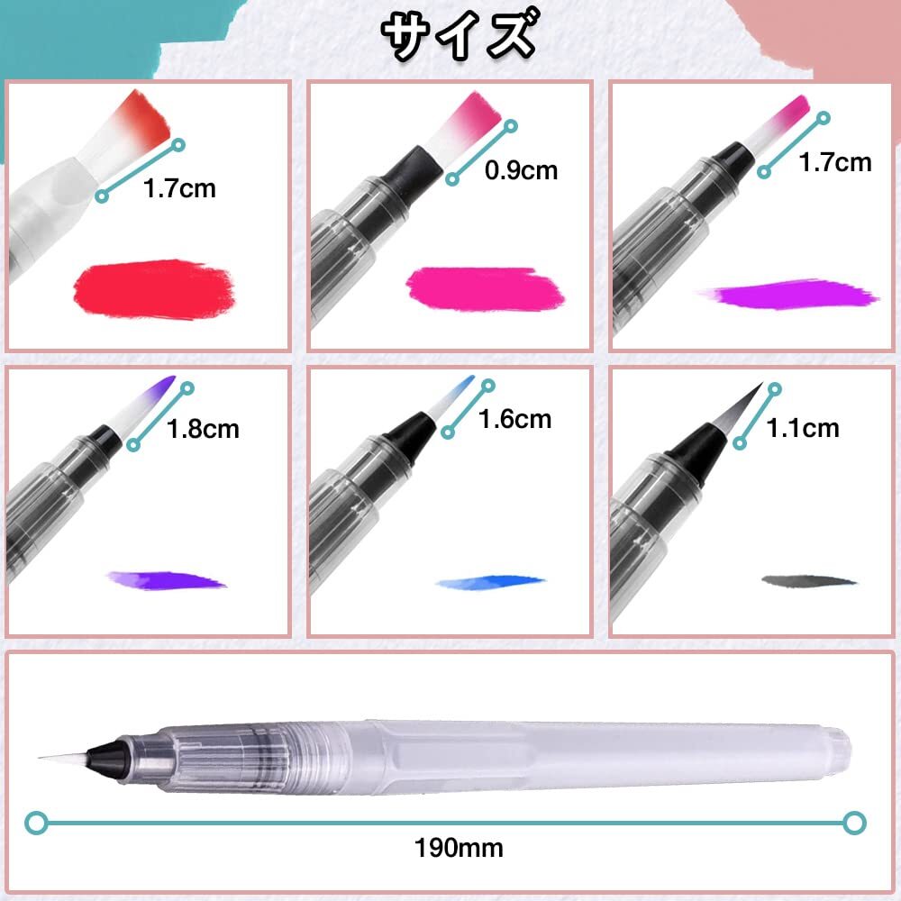 絵筆 水彩ブラシペン ウォーターブラシ アートペイントブラシセット 水彩ペン 水彩色鉛筆- 190mm 水書 6本セット 道具 水