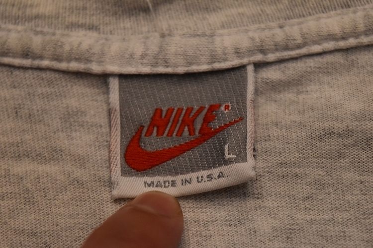 グッドプリント◎USA製90sビンテージNIKEナイキ半袖チャールズ・ウェイド・バークレー両面プリントTシャツLグレー系アメカジ銀タグ t938