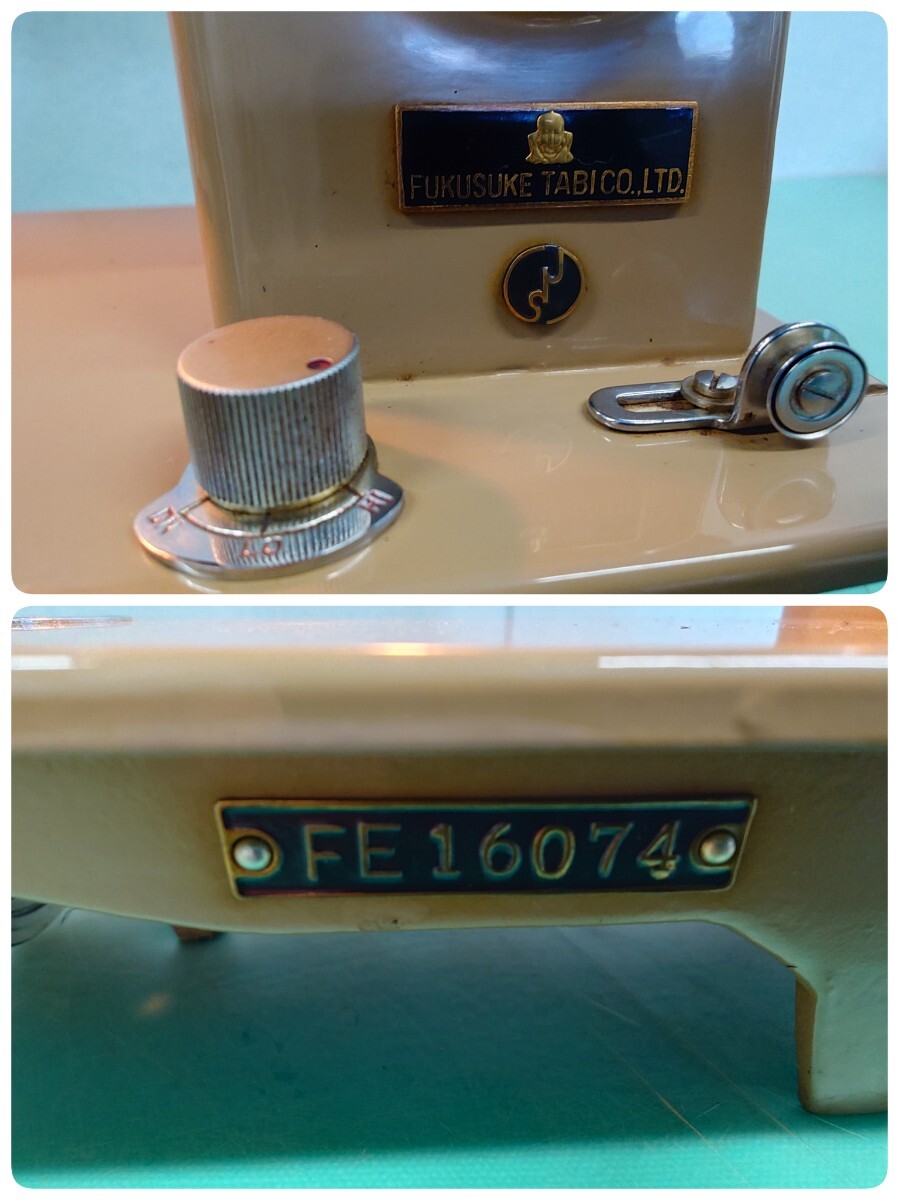 ● レア 金の福助マーク レトロ 当時物 FUKUSUKE TABIフクスケ 足袋 ミシン FE16074 職業 工業 台取り外し品 通電確認済 中古 ①