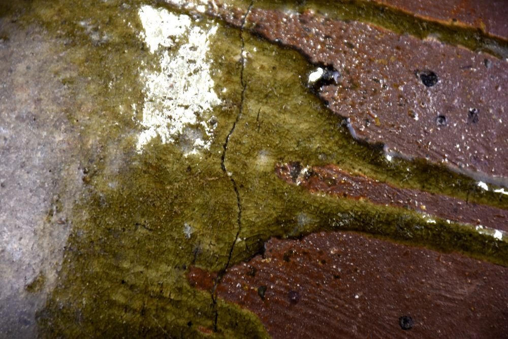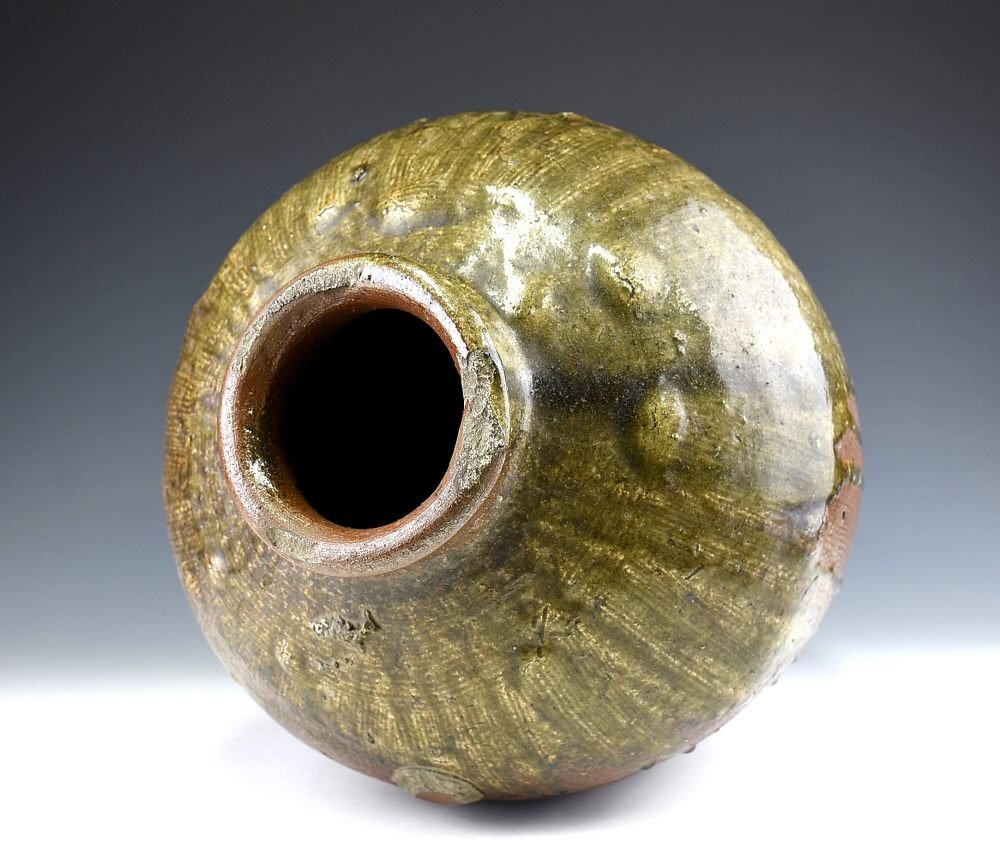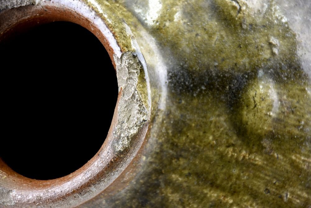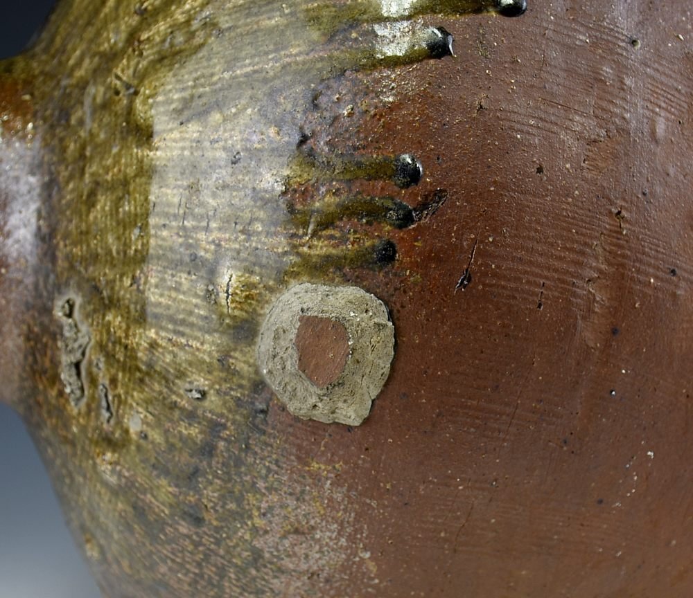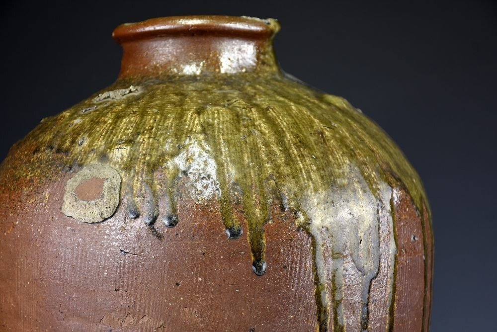 ◎古壺ゆえ石ハゼ等あります。8枚目の画像のような入に見える線が胴に数本ありますが、上から釉薬が掛かっており窯疵と思われます。叩いた感じもビビル音はしません。水漏れ等のご質問は長時間の検品を要しますのでご遠慮下さい。