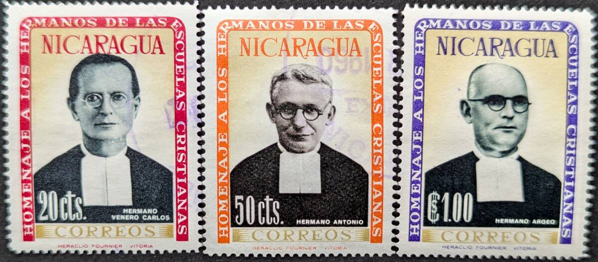 【外国切手】 ニカラグア 1958年07月13日 発行 ニカラグアキリスト教学校の兄弟記念とHl。ジャン=バティスト・ド・ラ・サール... 消印付き