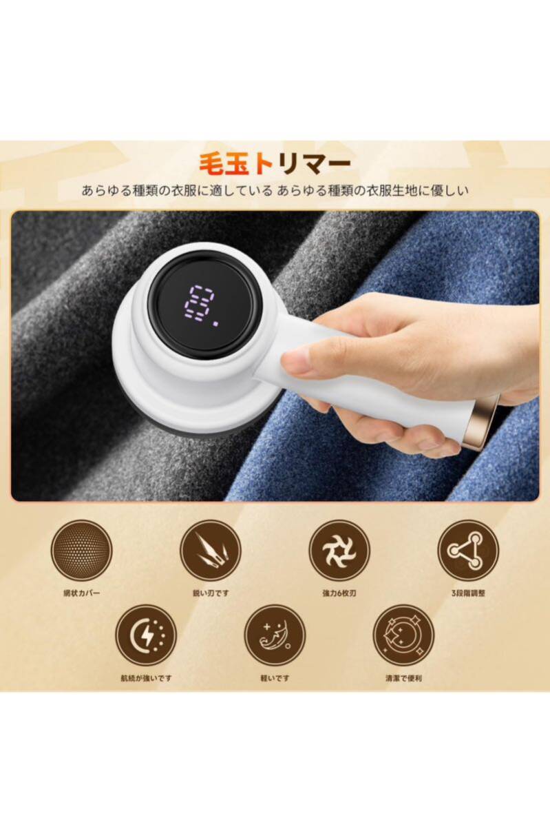 【アップグレード版 人気】FOXCUP 毛玉取り器 けだまとり 電動 毛玉クリーナー 毛玉カッター 安全装置 液晶ディスプレイ USB充電 あらゆる洗濯物靴下衣類寝具カーペット パワフルな6枚刃 3段階のスピード調整 代替ブレード 持ちやすく軽量 旅行 専業主婦 家庭用ギフト