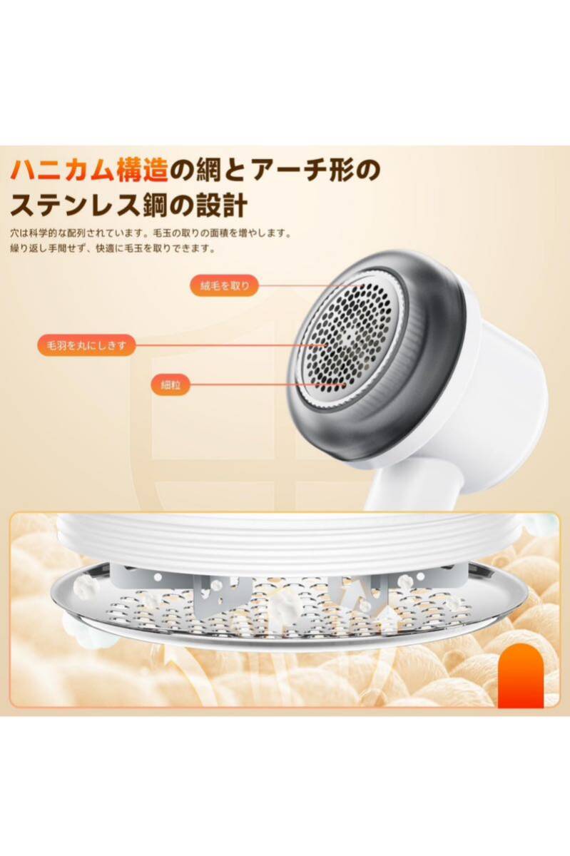 【高速回転と高強度外刃】このけだま取り器は高速回転モーターを搭載しており、最高回転数は11000rpmです。強力な6枚のステンレス刃が装備されており、切断性能は卓越しています。毛玉だけでなく、衣類の繊維くずも取り除くことができます。お洋服を新しいように蘇らせます!日常生活に欠かせない毛玉取り器です。