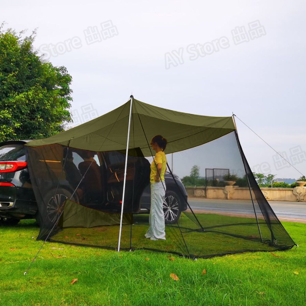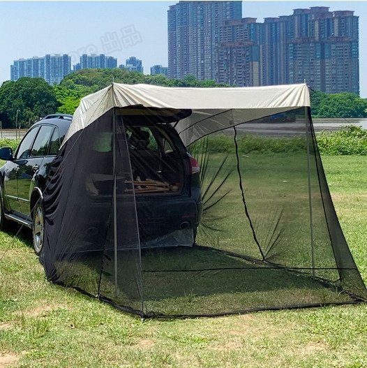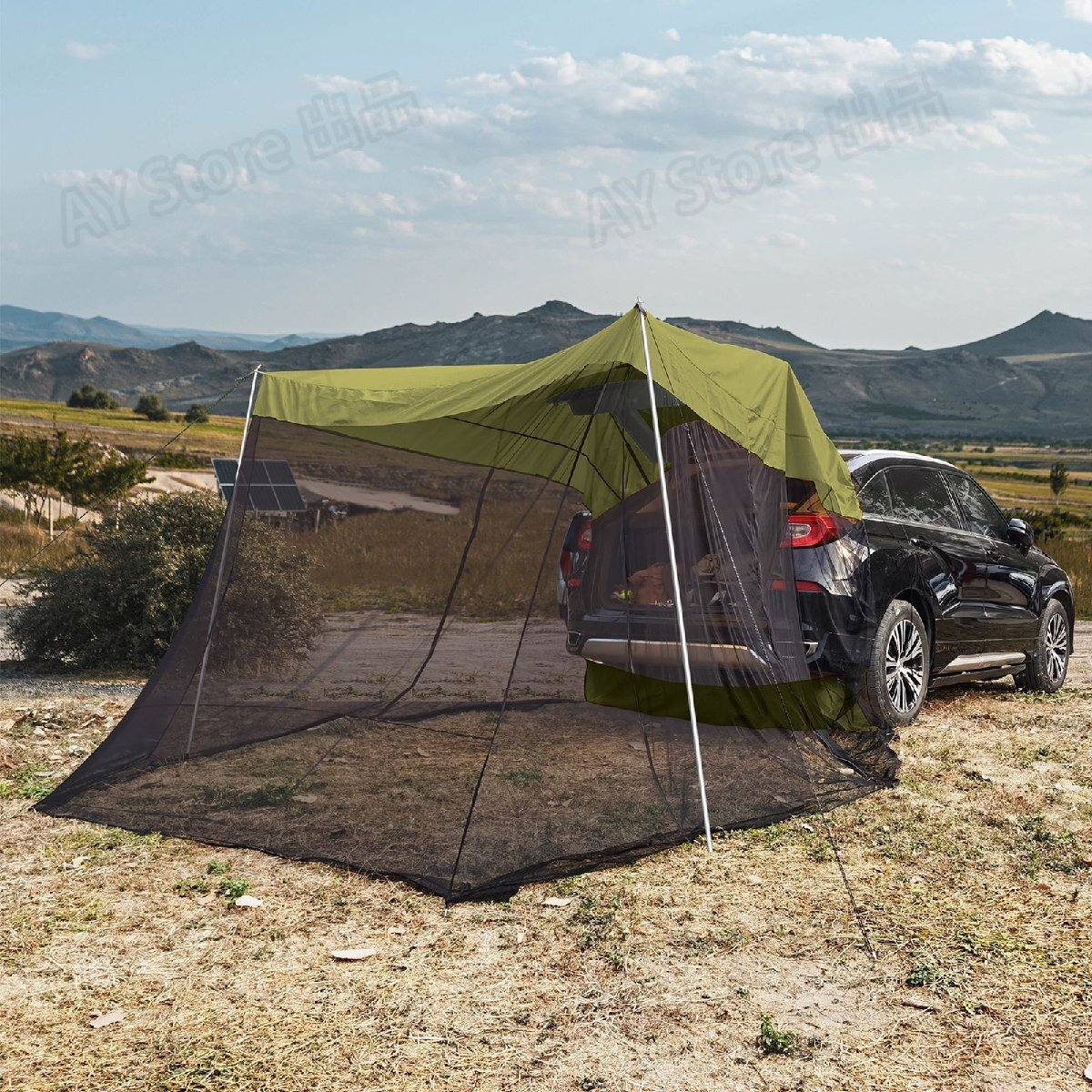 カーサイドタープ 車用タープテント トランクテント 車と連結 4-8人用 カーオーニングサンシェルター 簡単設置 キャンプ 通気性 防雨防虫