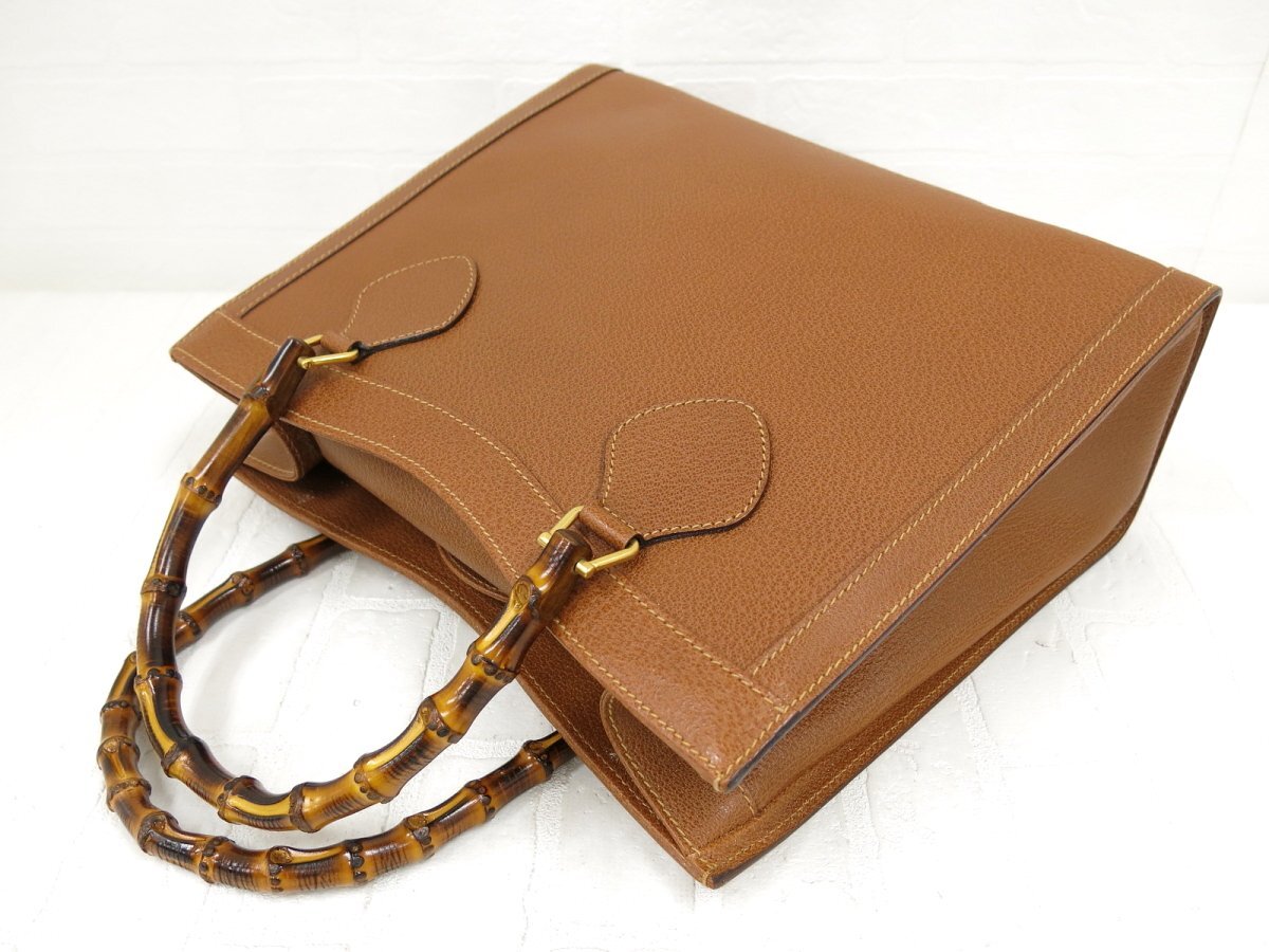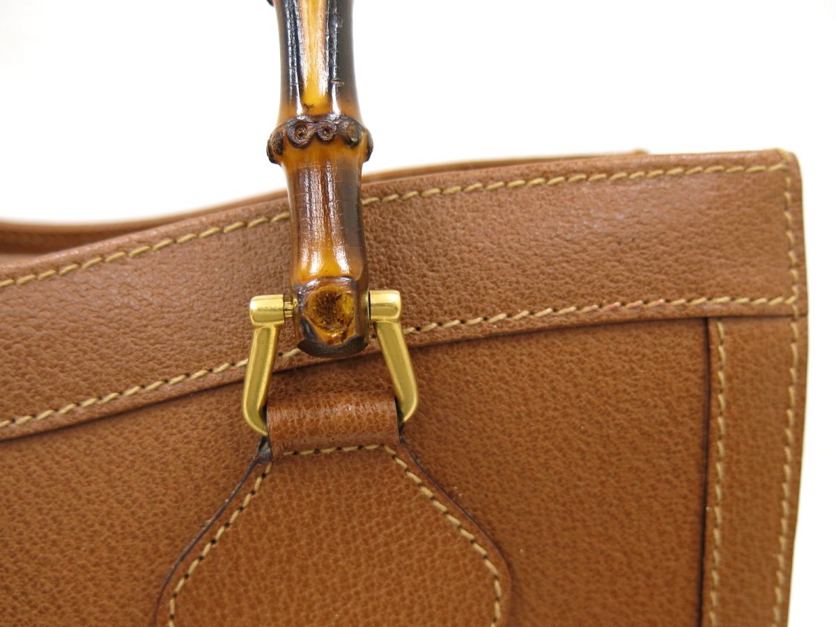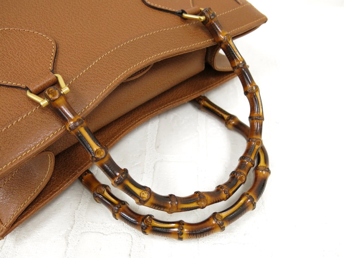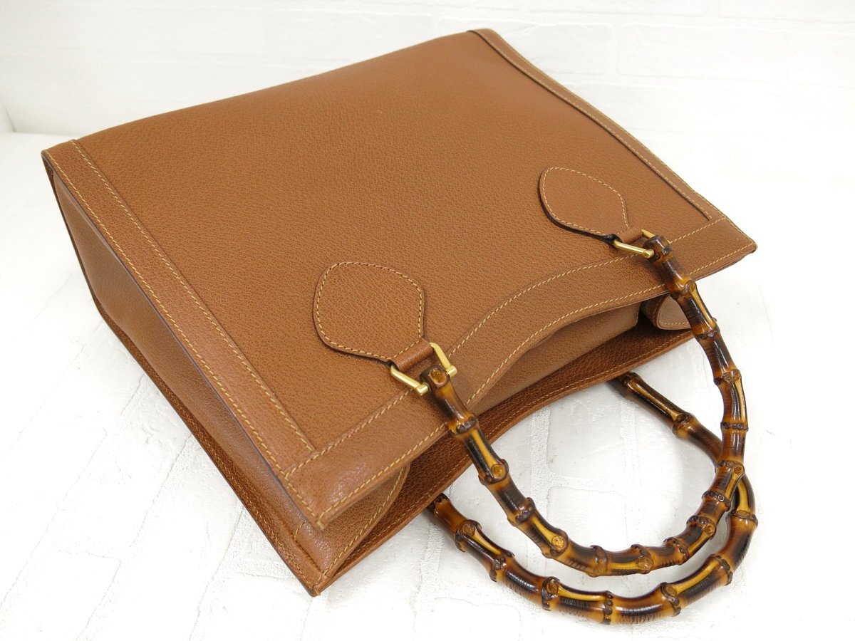 ◆超美品◆GUCCI オールド グッチ◆バンブー◆カーフ レザー 本革◆トート バッグ◆茶 ゴールド金具◆イタリア製◆ヴィンテージ◆A13038