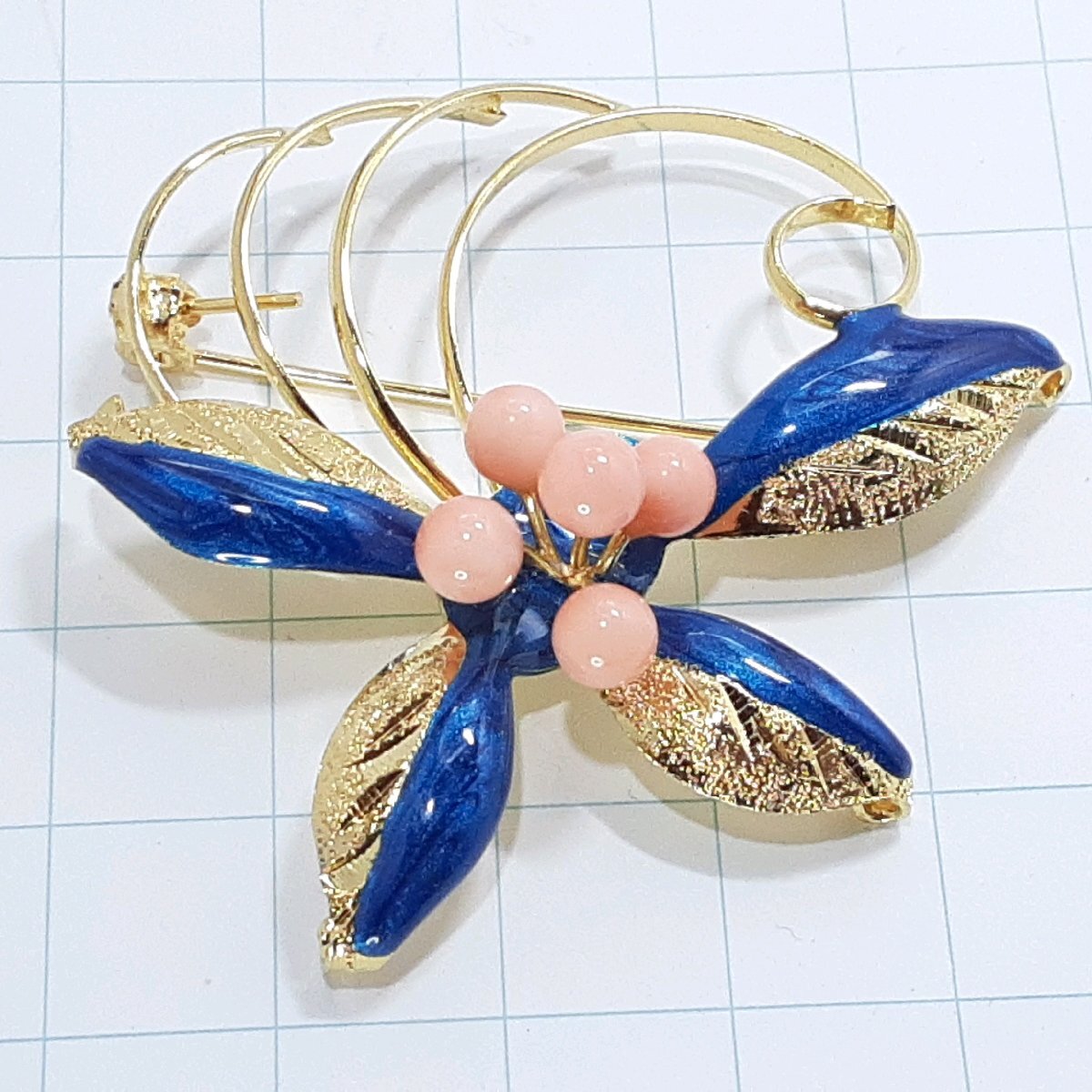 送料無料)ビンテージ☆七宝仕上げ ピンクボール☆アンティーク ブローチ A31614
