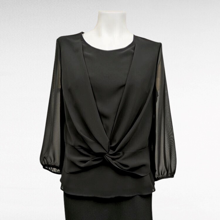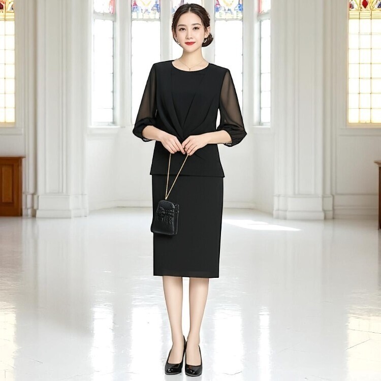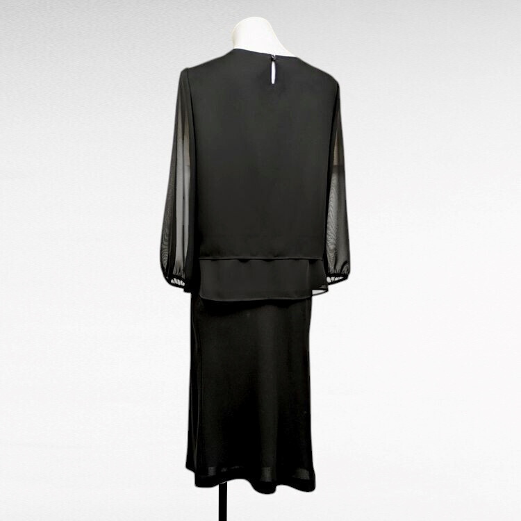| 上品な透け感のシフォン素材七分袖フォーマルブラウス。 繊細なシフォン素材の七分袖は、程よい透け感と軽やかなドレープが特徴。 腕を美しく見せつつ、涼しげでエレガントな印象を与えます。 袖部分以外にはしっかりと裏地が付いているため、インナーを気にすることなく、安心してご着用いただけます。 透け感を楽しみつつも、きちんと感をキープできる計算されたデザインです。