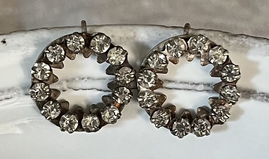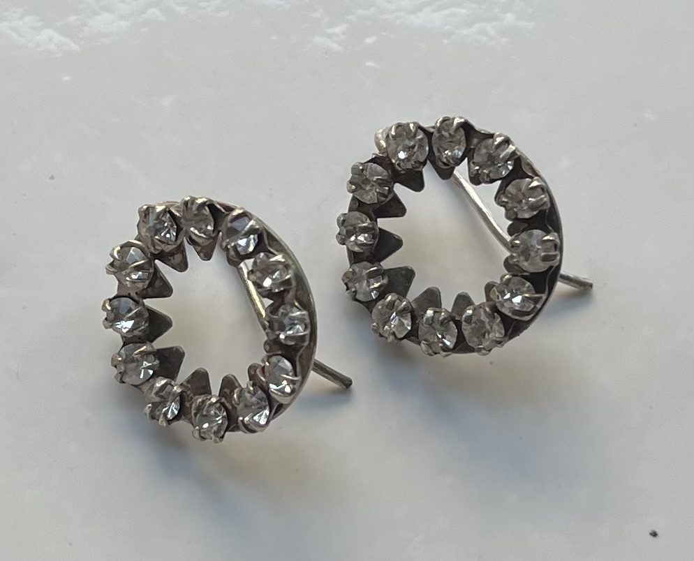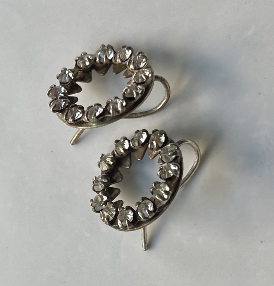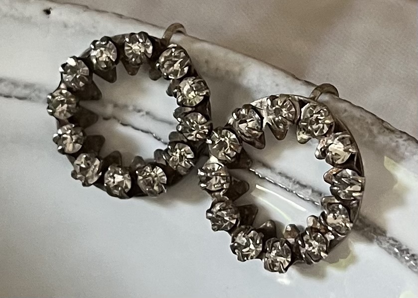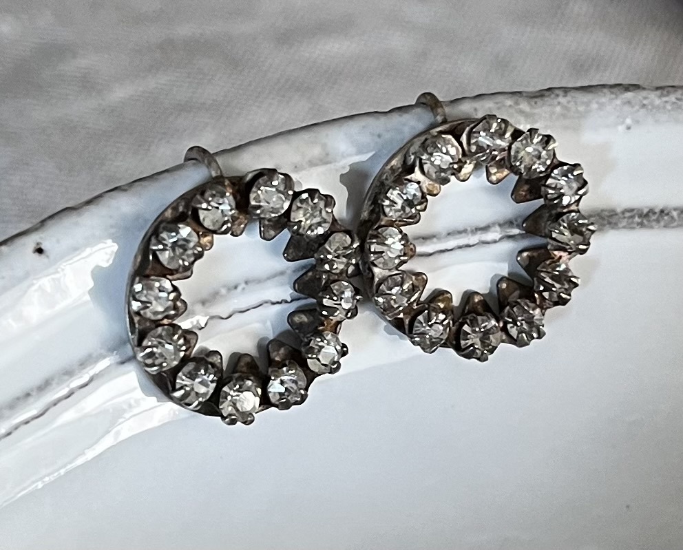 長い年月を経てシルバーもラインストーンも輝きがまろやかになり、アンティークならではの落ち着いた深みと趣があります。