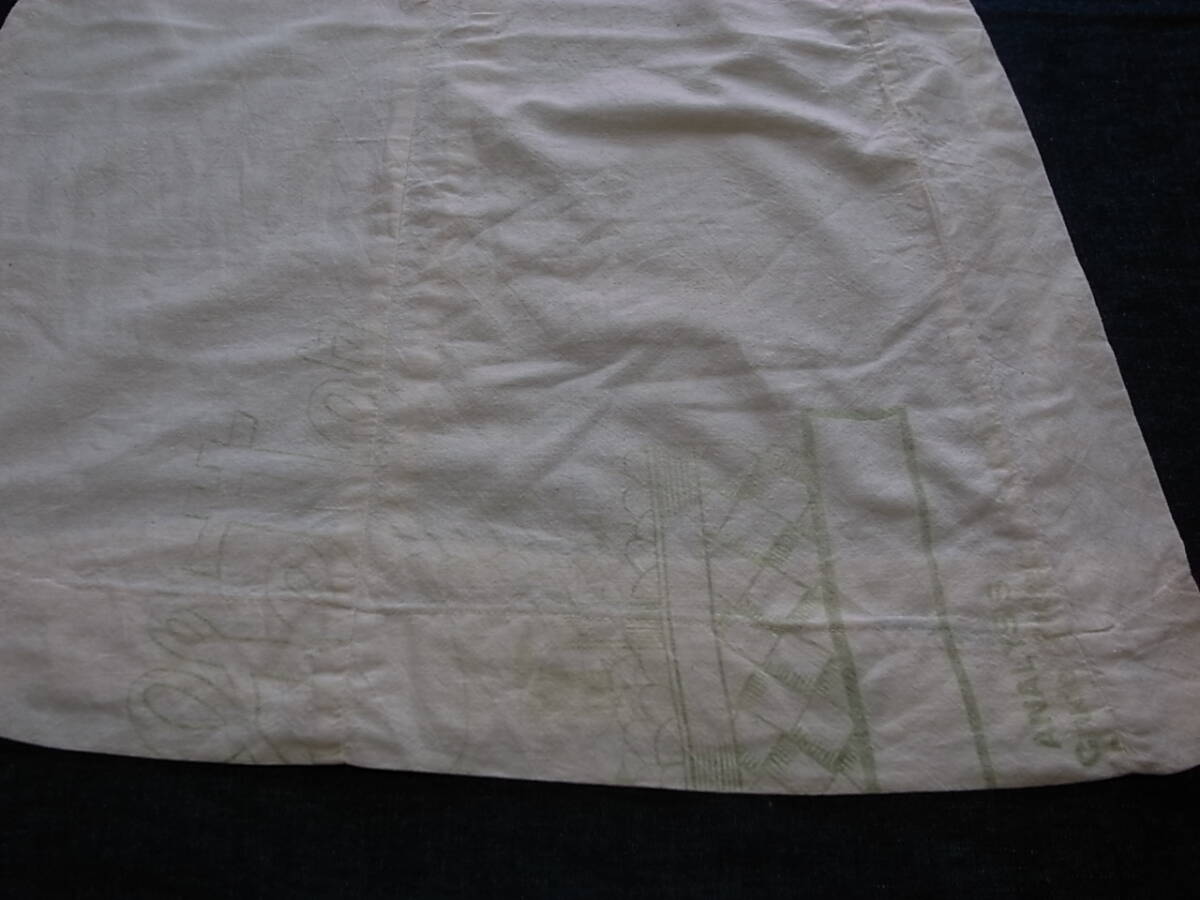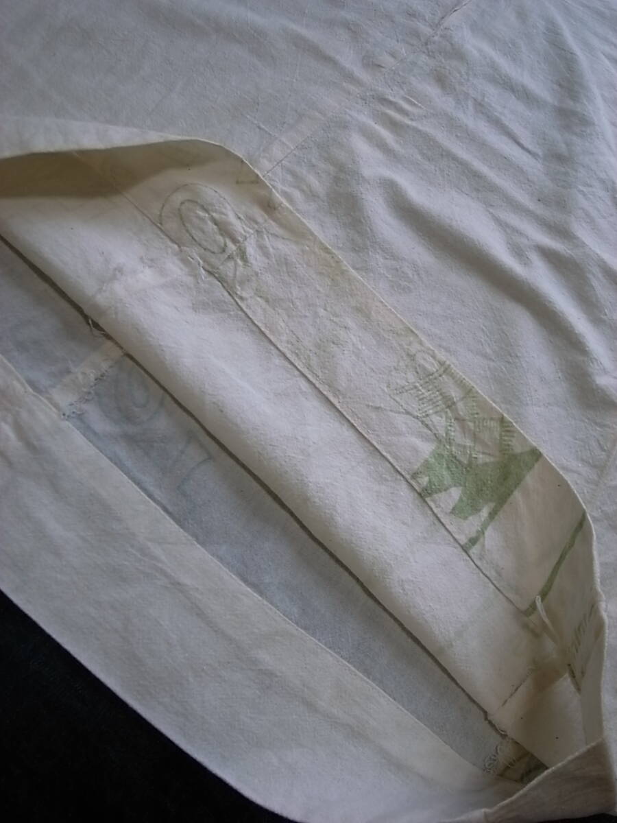 裾部分などにフィードサックらしい文字や模様が残ってます。