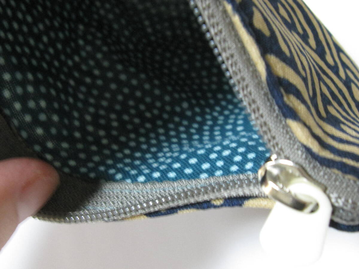内側は、古布 (鮫?・ドット調・模様)  ◎ファスナーは、グレー系 (つまみ付き)