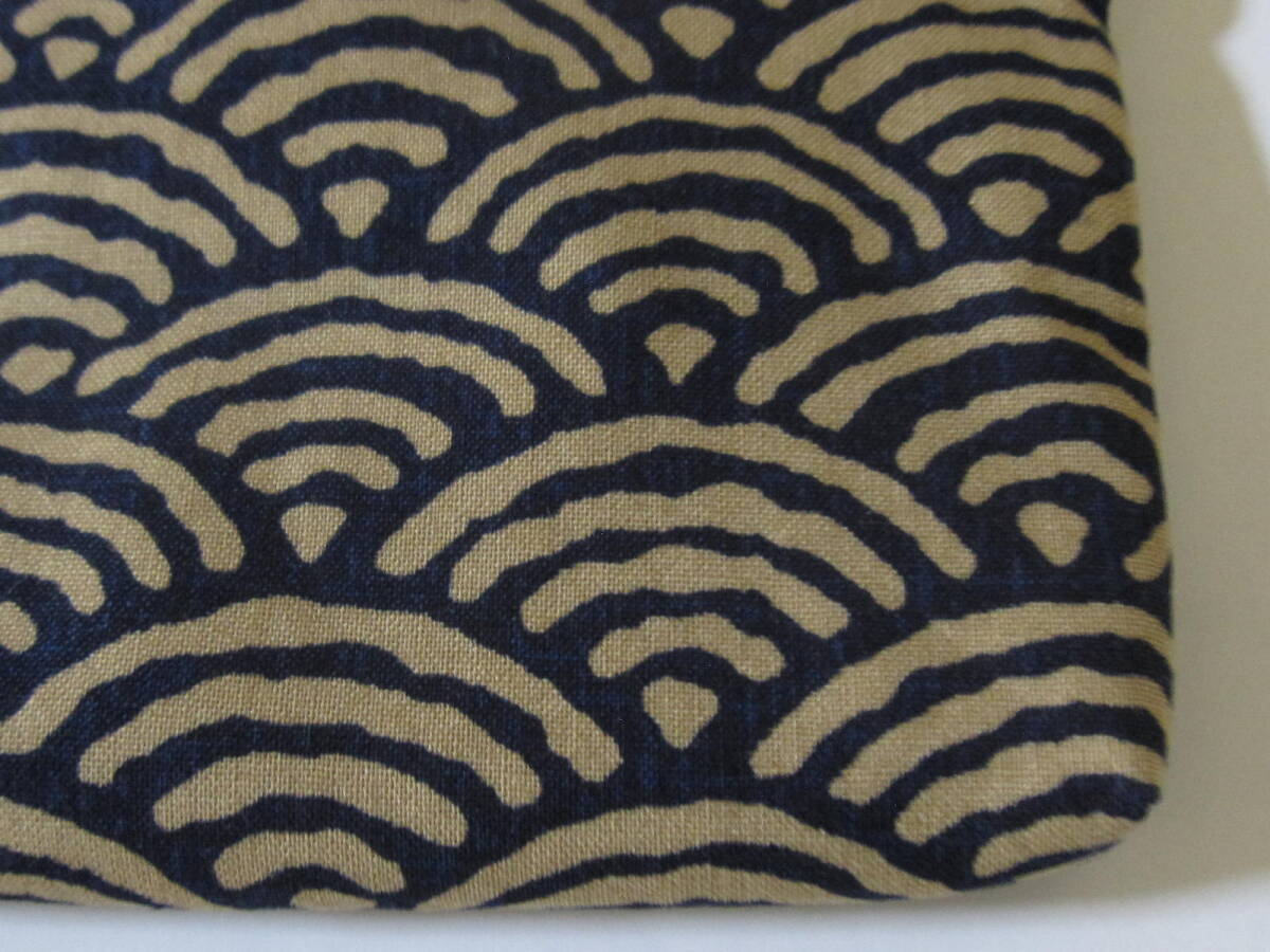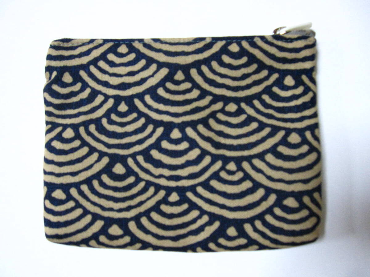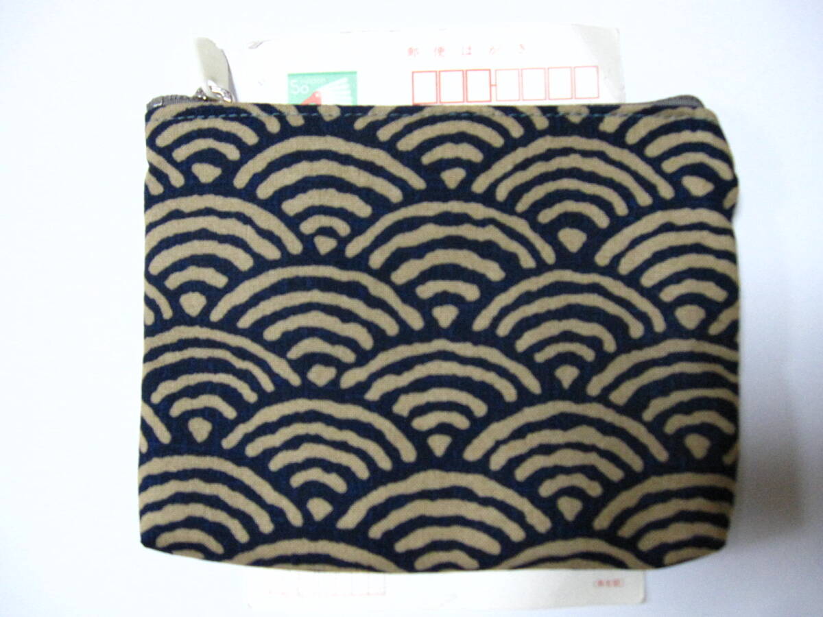 手作り 着物リメイク ポーチ 青海波 模様 濃紺 小紋 和柄 古布 レトロ ハンドメイド 冬 財布 小物 手芸 充電器 男女 兼用 綿 可愛い お洒落