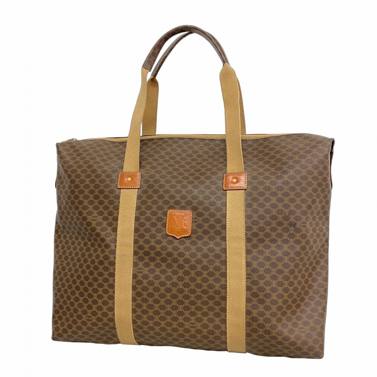★SALE【5hb1478-h】セリーヌ ボストンバッグ マカダム PVC ブラウン ゴールド金具【中古】メンズ レディース ユニセックス